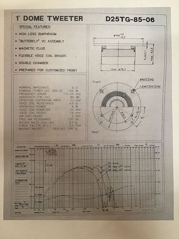 Vifa D25TG-85 dome tweeter. This is a batch of mid level tweeters from the 1990s. All have tested functional, there is some variation in cosmetic appearance.