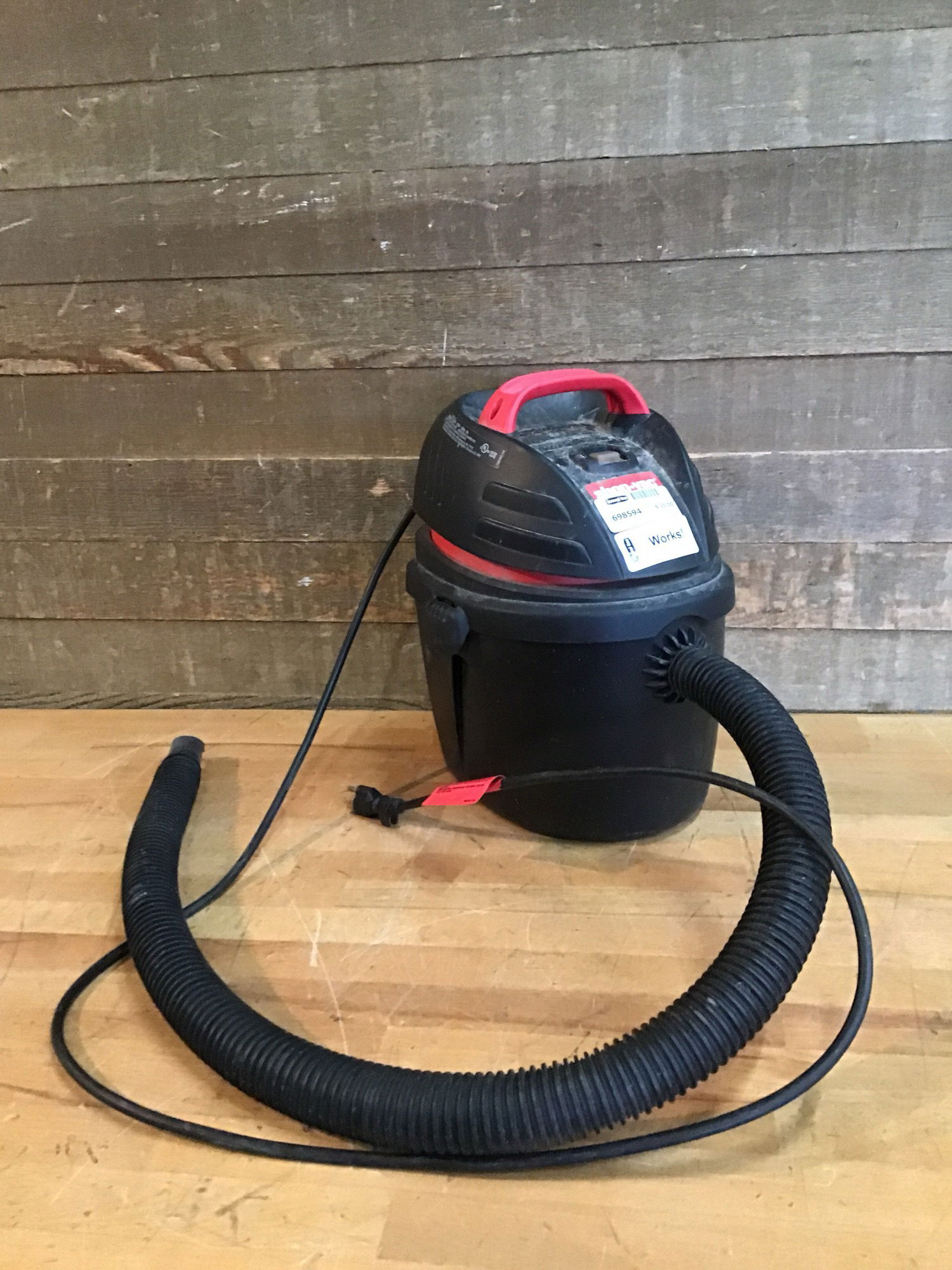 Small used ShopVac. 2.5 Ga, 2.5HP. Tested in house and appeared functional.