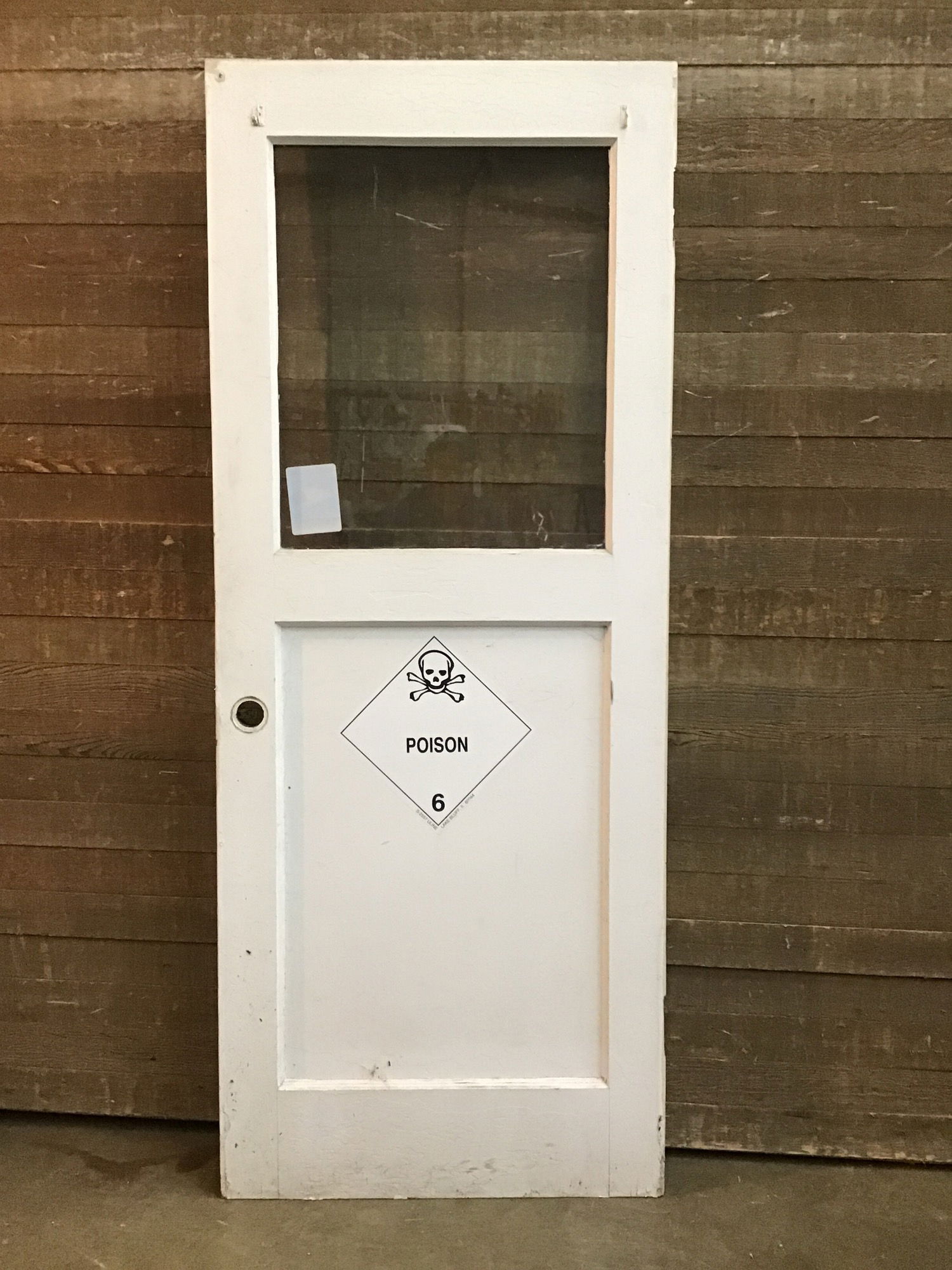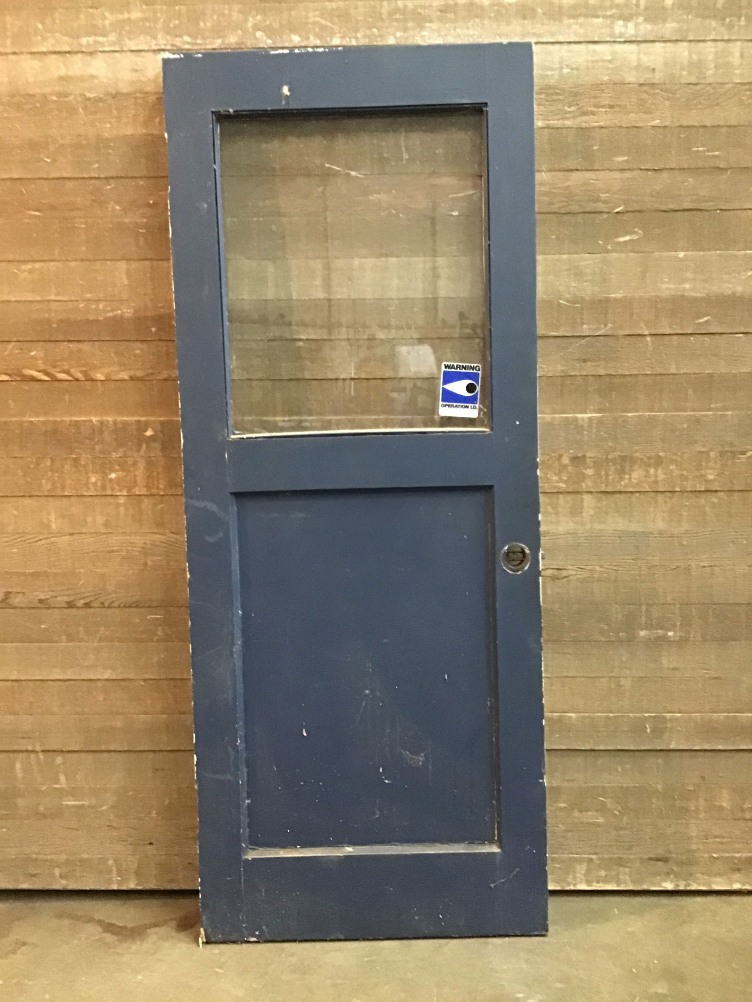 Half lite exterior door with single pane glass. Made of solid wood and feels solid.