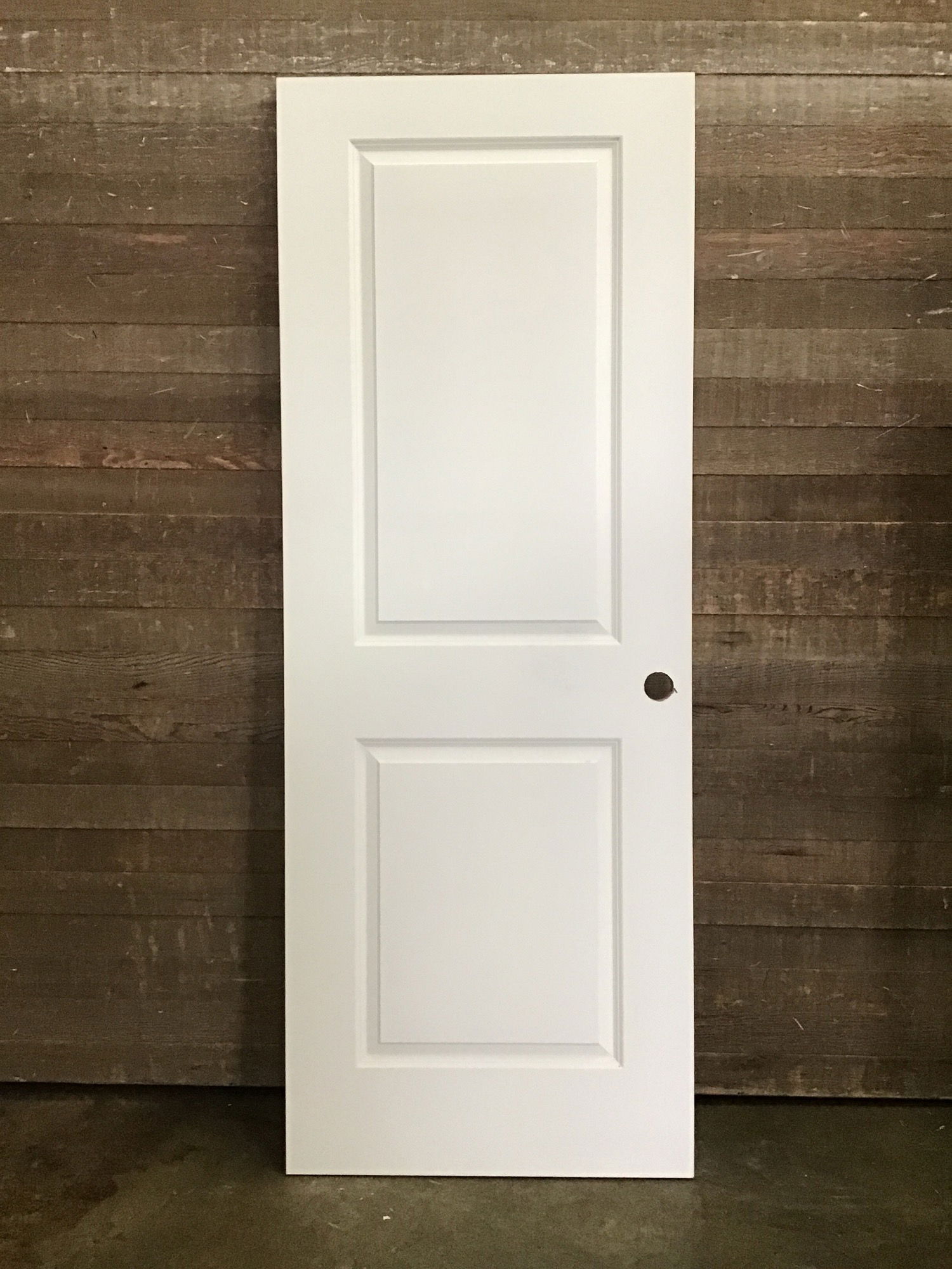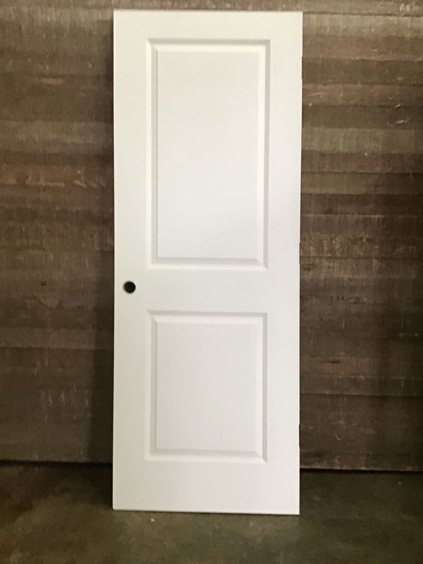 Never installed, 2 raised panel hollow core door. Has left hand swing hinge cuts and bore hole. May have minor cosmetic damage otherwise in good condition.