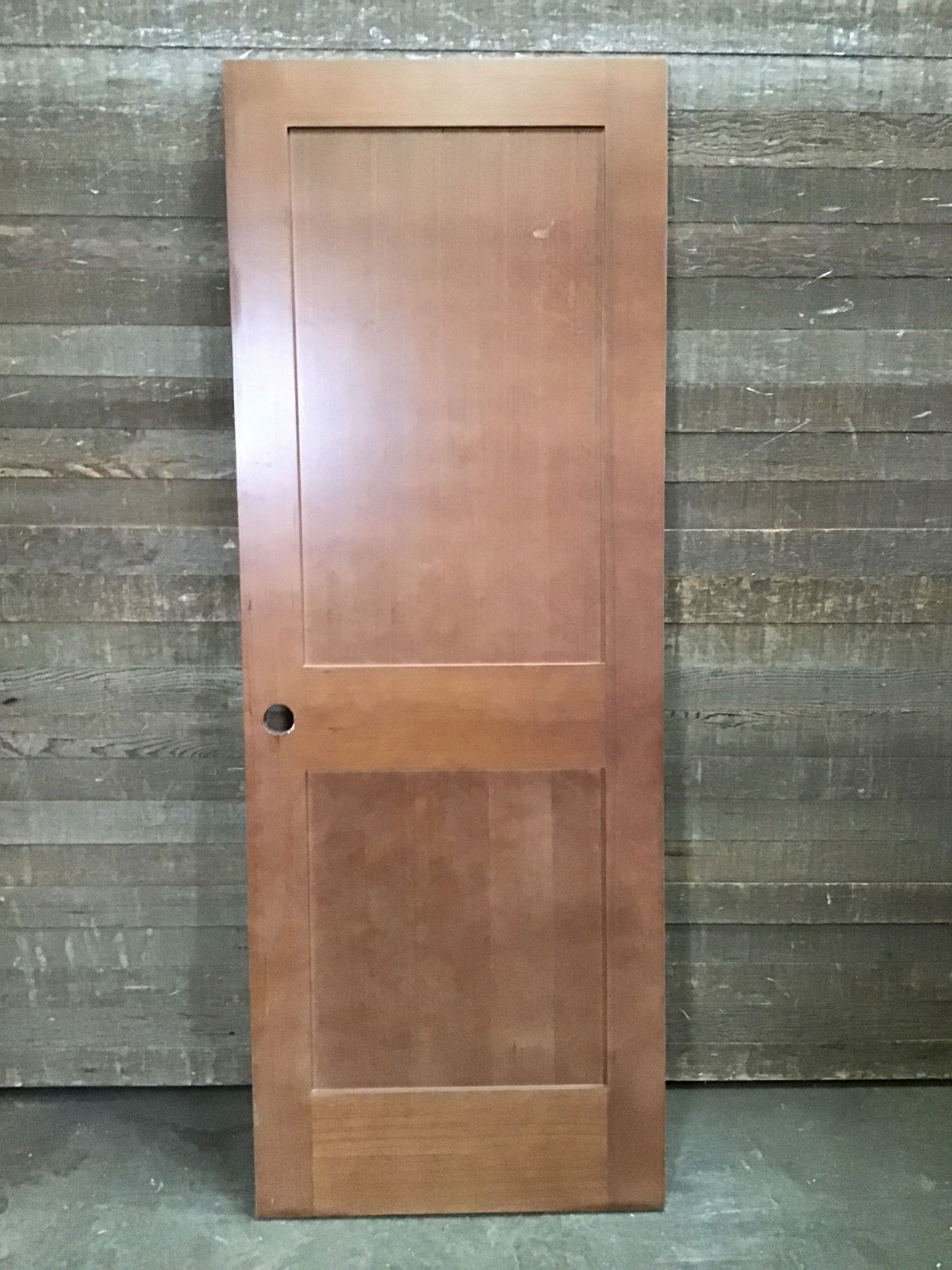 Medium stain hemlock Shaker two panel door, in very good condition.