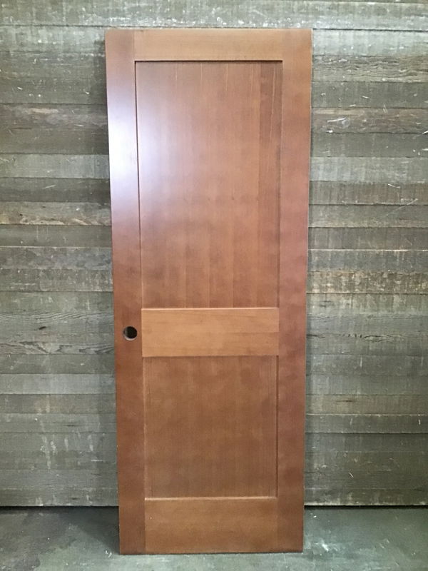 Medium stain hemlock Shaker two panel door, in very good condition.