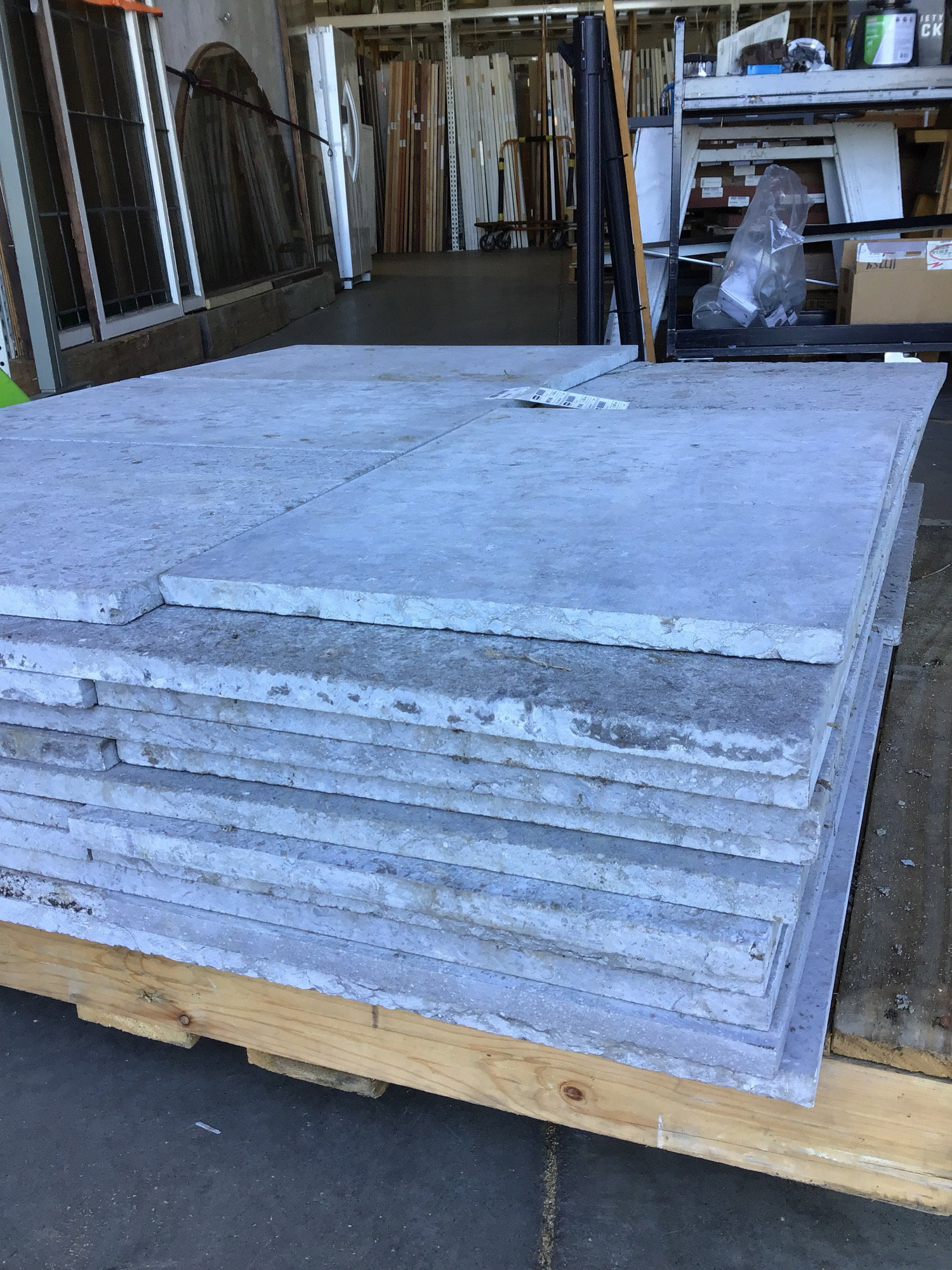 Some beautiful stone pavers. Travertine???? All look to be in good condition with exception of like two? This is a bulk item. No holds please.