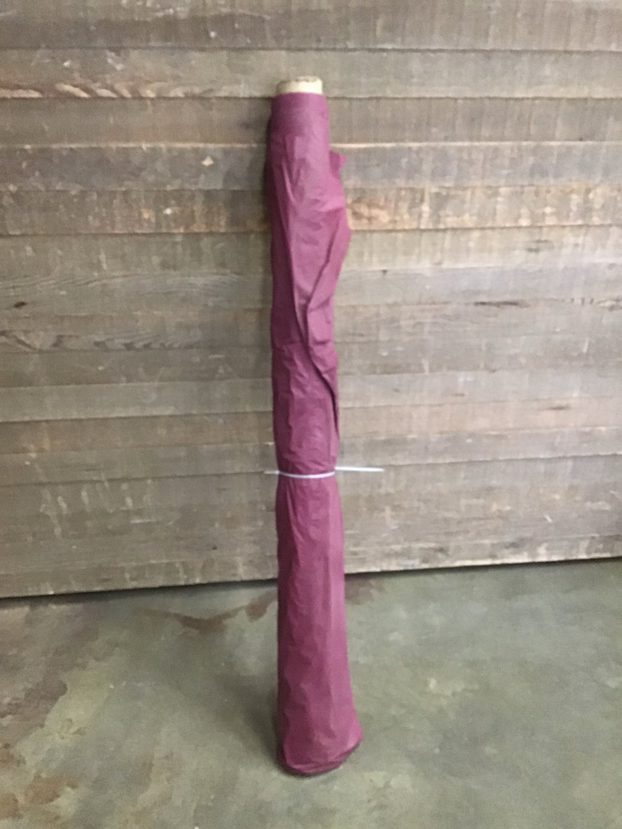 Nice sized roll of 54" tall thin vinyl fabric like the kind used for making flags and kits and other similar items. Comes in a wine red color. Great for making signs or even light weight covers.