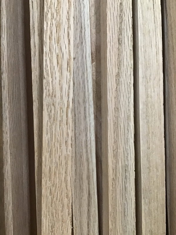 Raw unstained 1x1 Red Oak. Use to make a trellis or to make a decorative slat wall. Photo may be representational. This is a bulk item. No holds please.