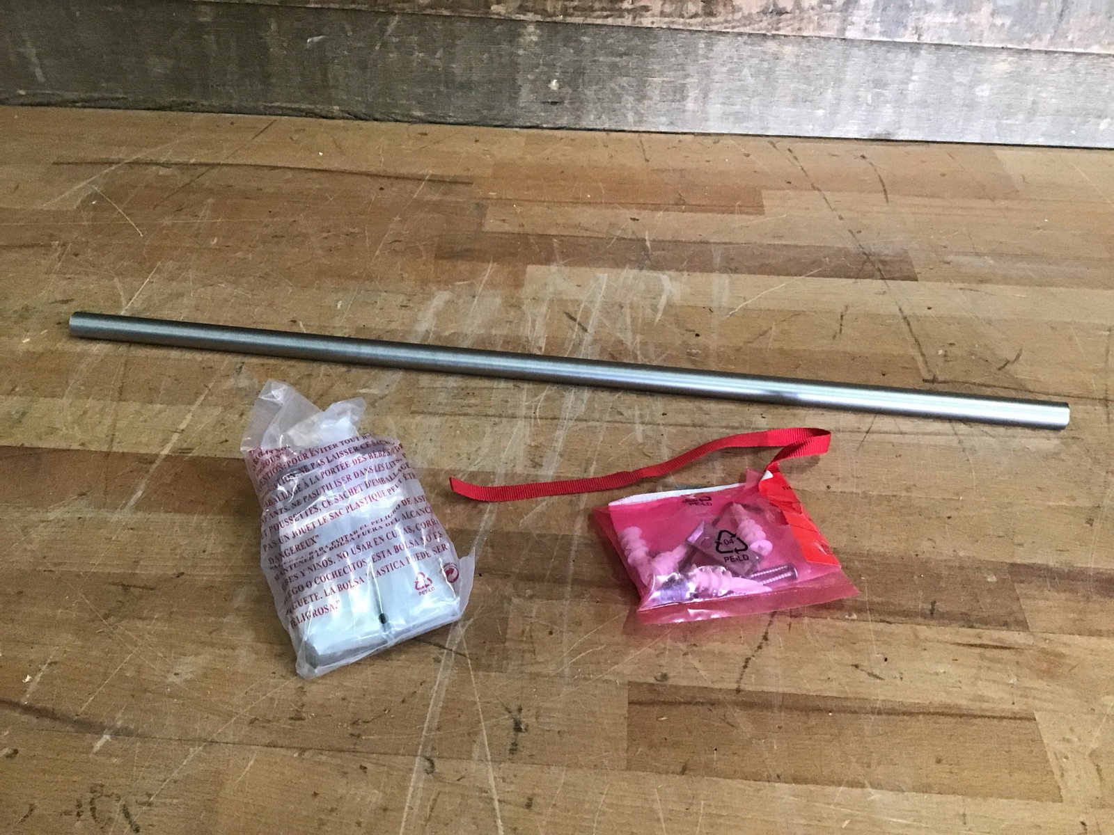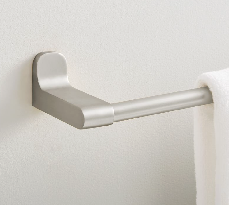 New, never used brushed nickel towel bar with hardware by West Elm. This towel bar features sleek MCM inspired brackets and sells new for almost $70, see here for details.