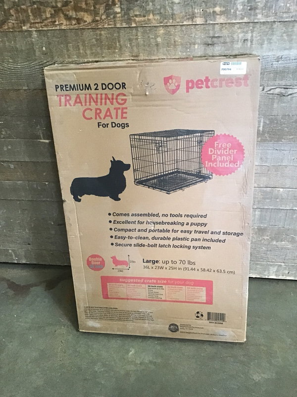 New in box, large 2 door Petcrest training crate. This model sells new online for over $100, see here for details.