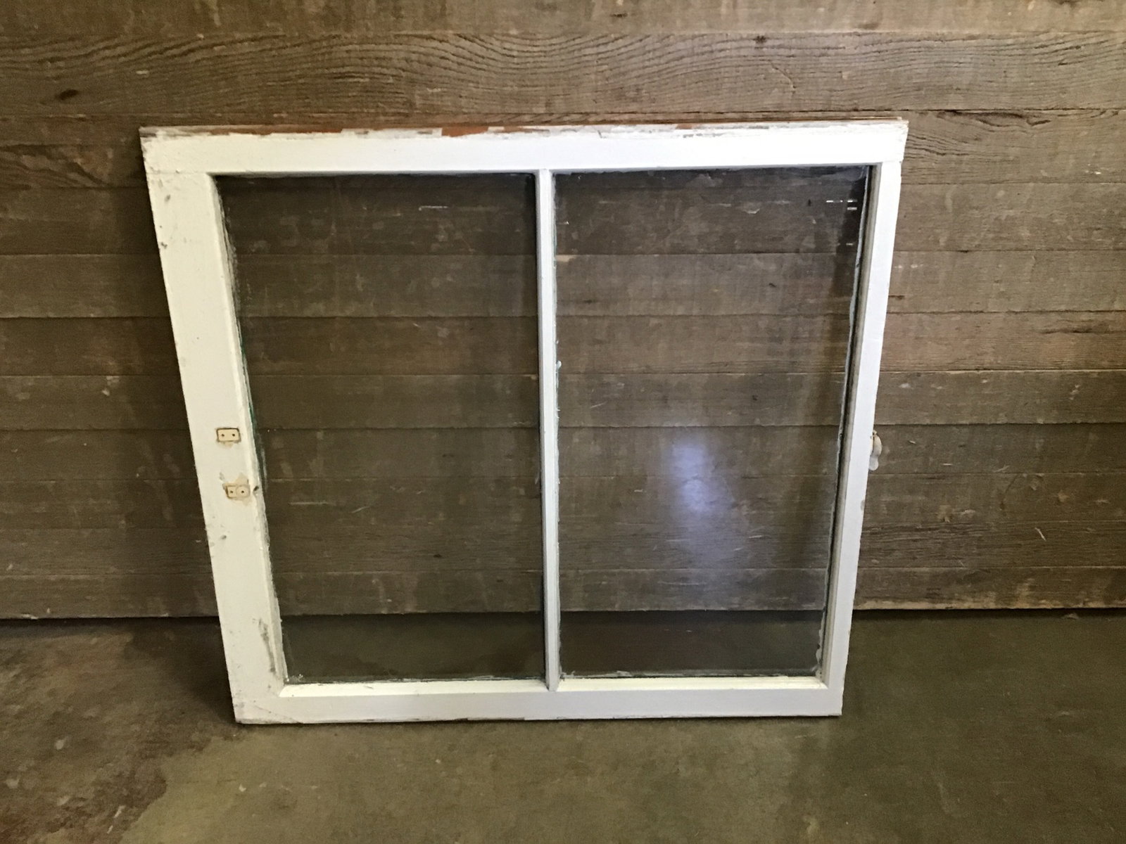 Old school wooden window sash, painted white with two true-divided panes. It's older, paint's chipped and has seen some use so could use a good clean up but the panes and frame are in good condition. Likely has lead paint so keep that in mind.