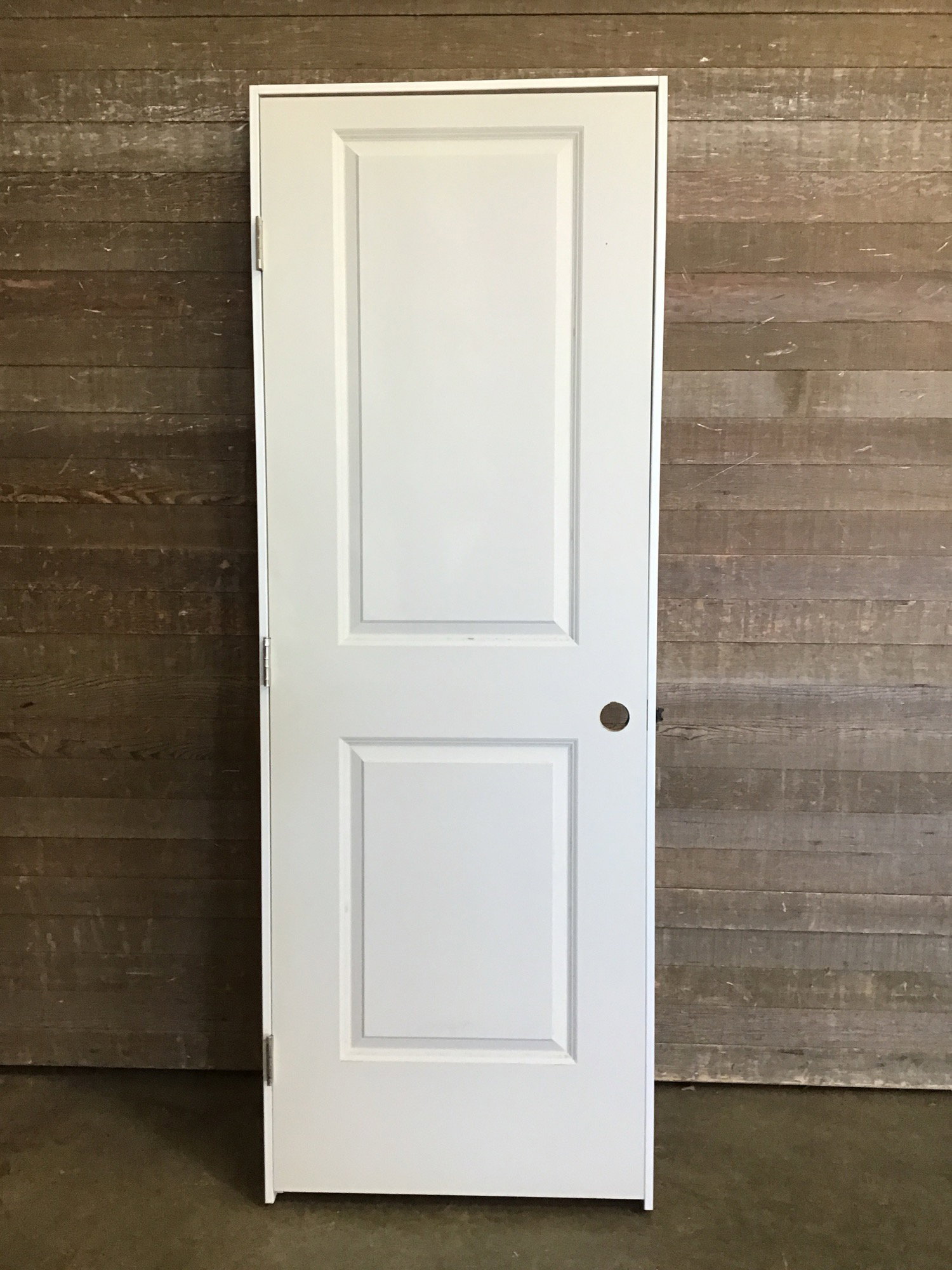 New, never installed 28" hollow core faux two raised panel door prehung in an MDF jamb. This door is primed and ready to paint the color of your choice. Right hand swing hinge cuts and a bore hole. There may be some minor cosmetic damage. Photo may be representative.