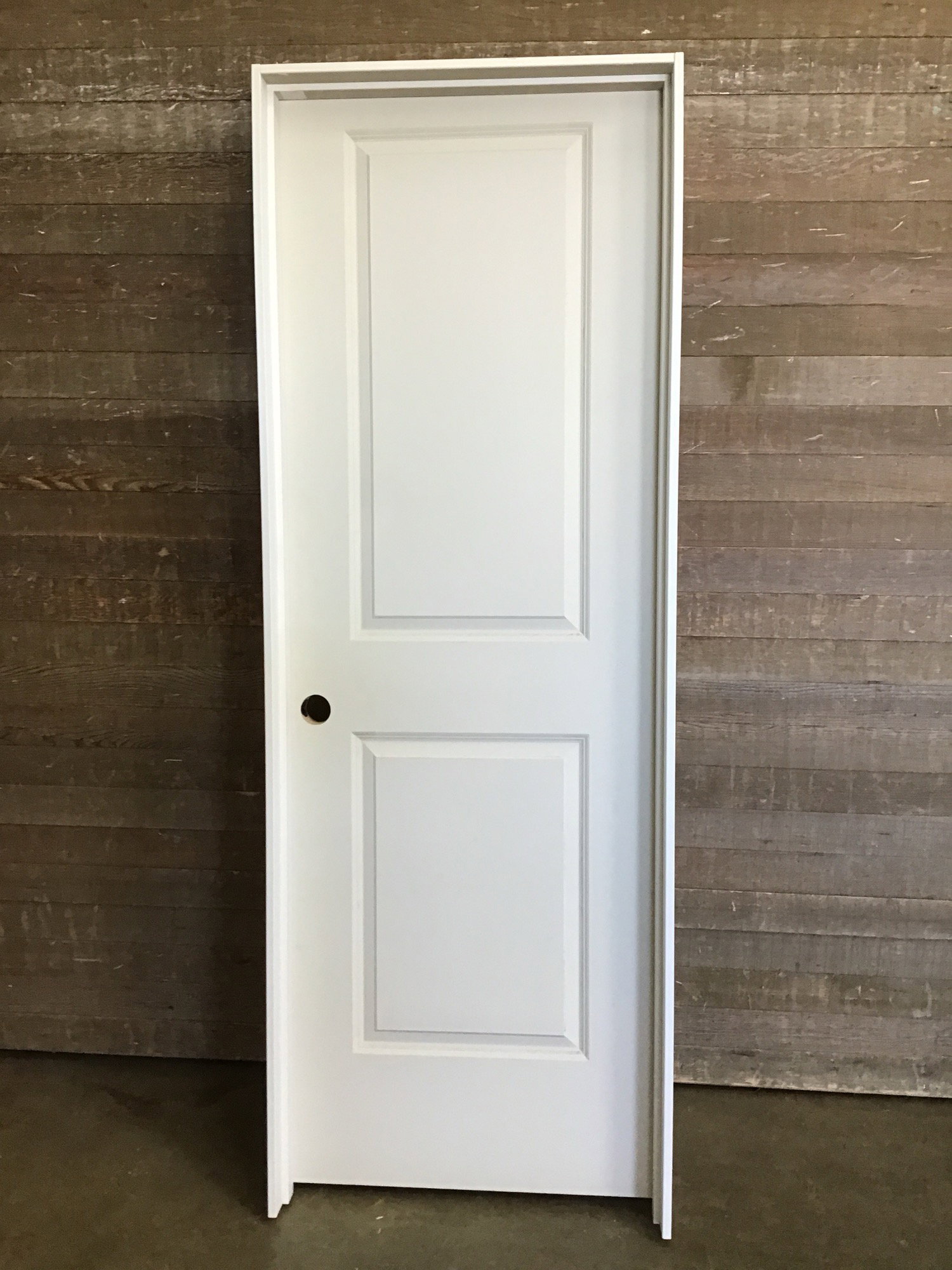 New, never installed 28" hollow core faux two raised panel door prehung in an MDF jamb. This door is primed and ready to paint the color of your choice. Right hand swing hinge cuts and a bore hole. There may be some minor cosmetic damage. Photo may be representative.