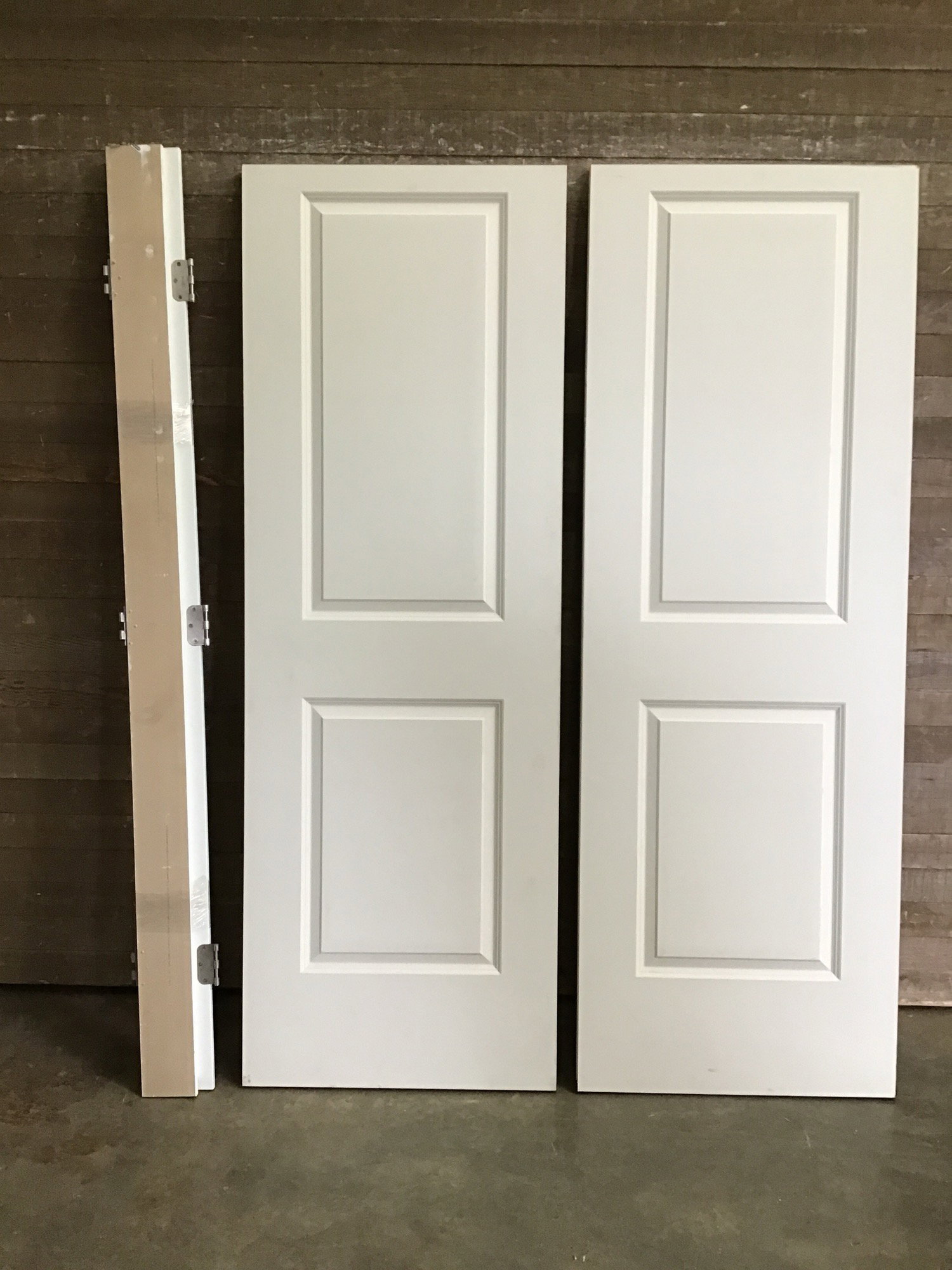 Primed MDF hollow core panelled double door with full jamb kit, ready to assemble and looks to have never been installed before. Includes hinges and door catch hardware already installed. Kit comes as: 2 matching doors ready to build jamb bundle.