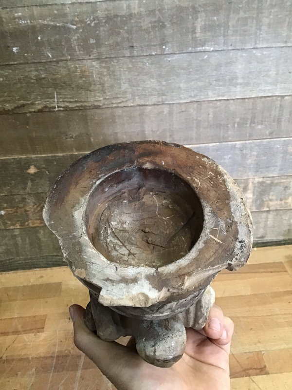 Wall hangable decoration with the ability to hold a cylinder shaped object at the top. Likely meant for a candle.