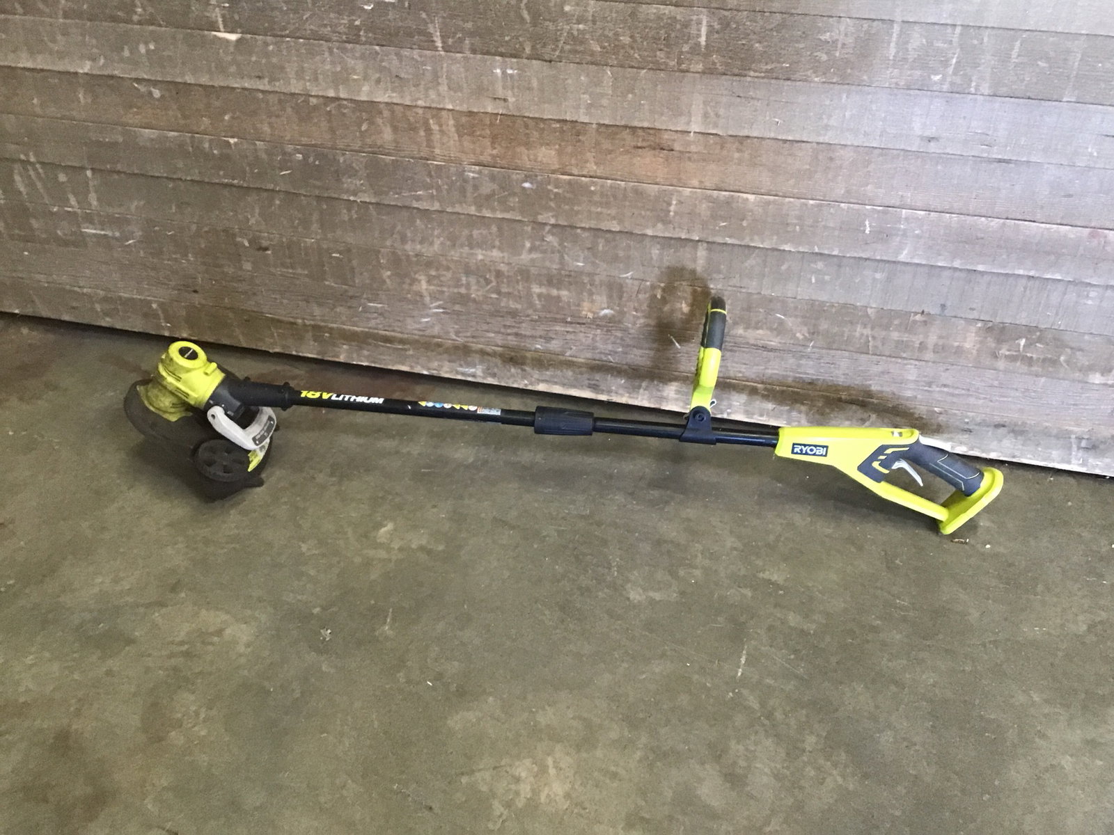 Ryobi cordless string trimmer with battery and charger. Tested in house and appeared fully functional.