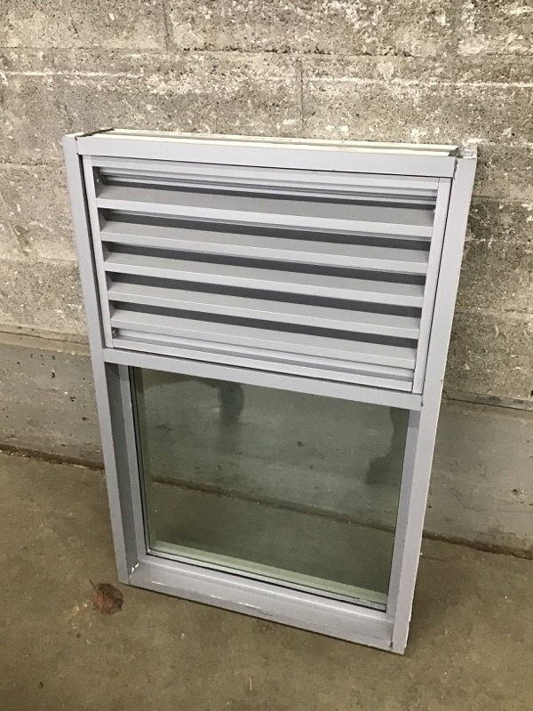 All aluminum fixed thermopane window that sits below an aluminum vented panel. 4.5" depth. It looks like a commercial window, but there's no reason your tool shed can't have a sweet aluminum window in like-new condition.