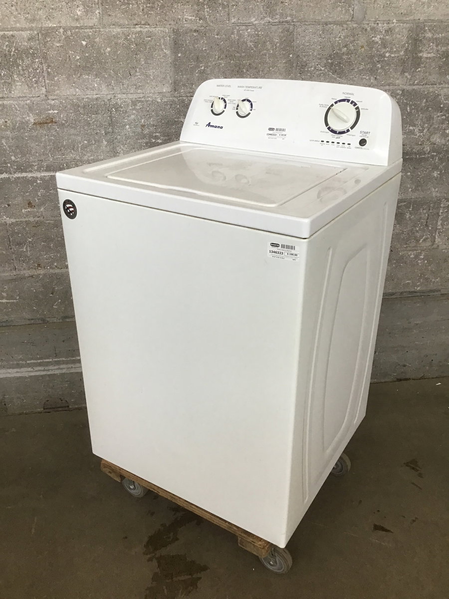 A top load white clothes washing machine by Amana. Looks to have been made in 2005 and electrical appears functional when tested in house, unable to test water but it looks in good shape!