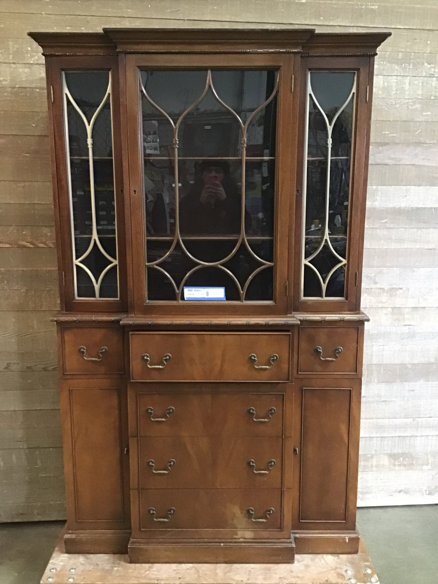 Antique Skandia Breakfront China Cabinet
