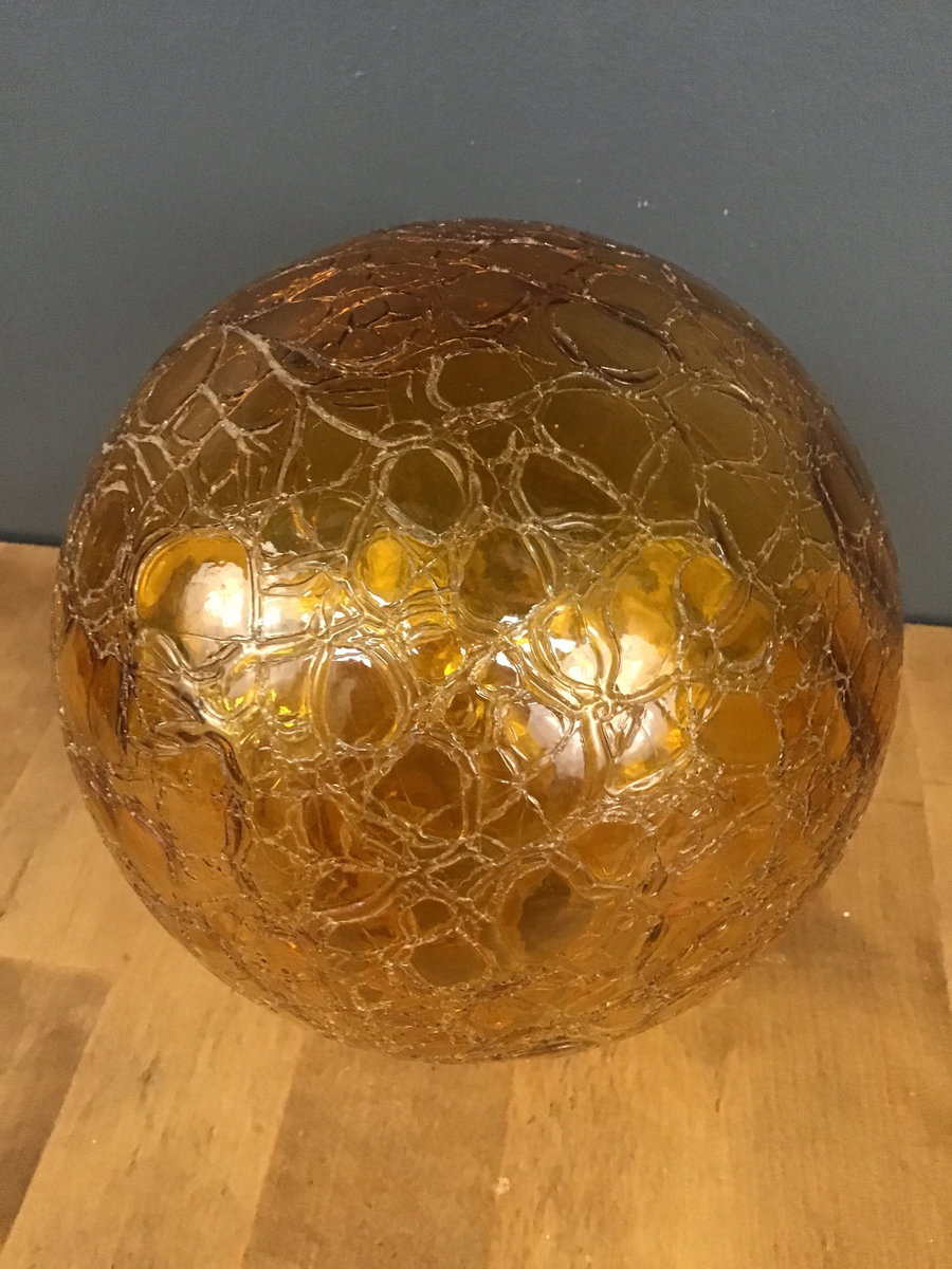 A gorgeous hand blown Art Deco amber crackle glass globe. Fits a 3 1/4" shade holder