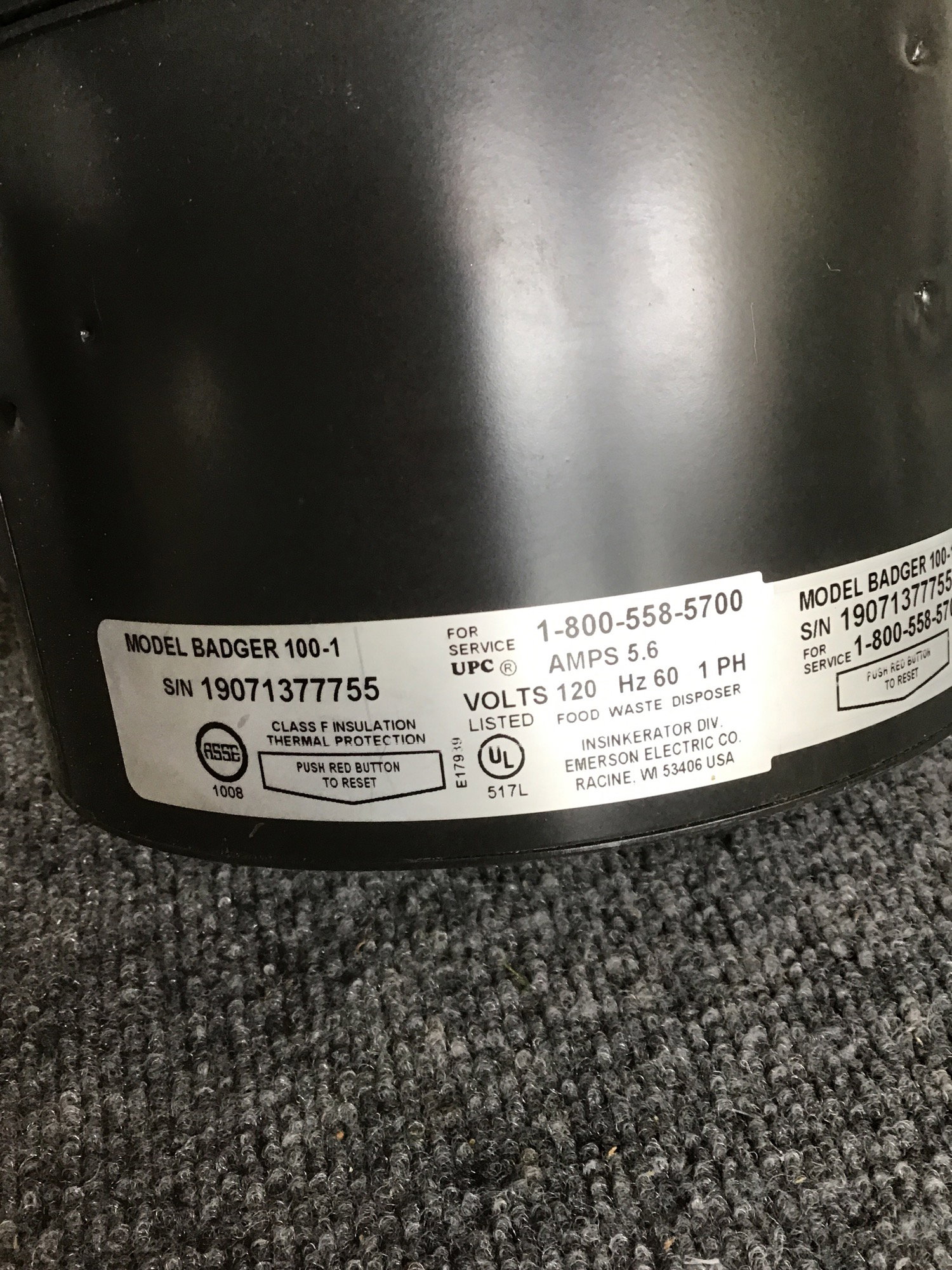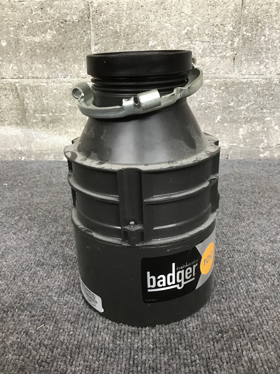 Badger 100 1/3hp sink disposal unit. Missing top trim, price reflects.