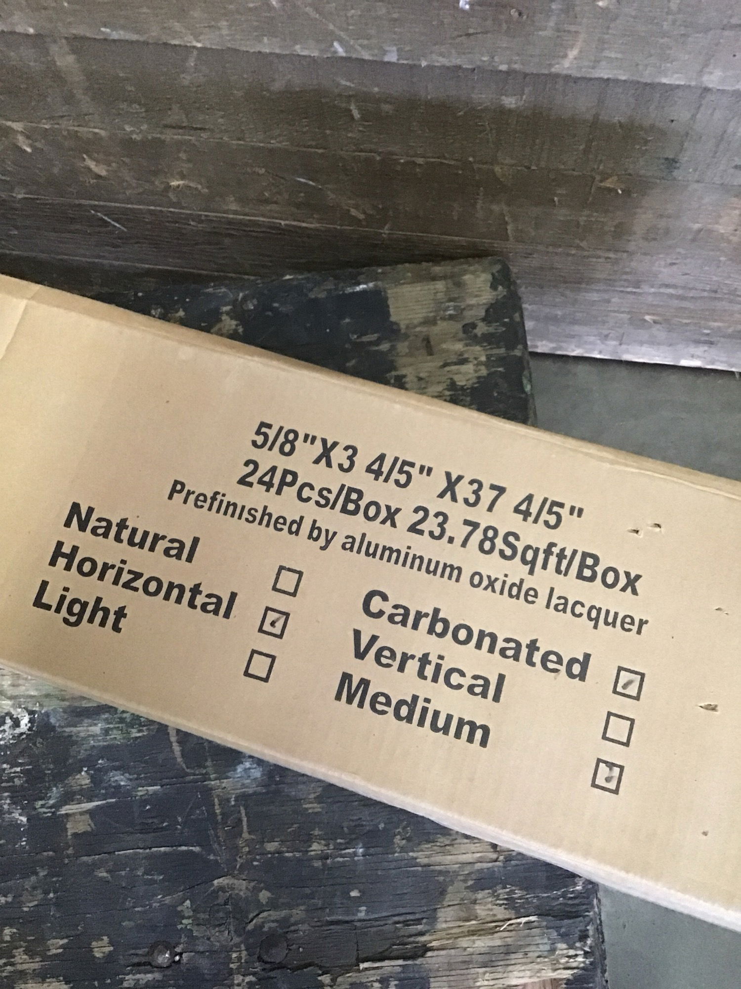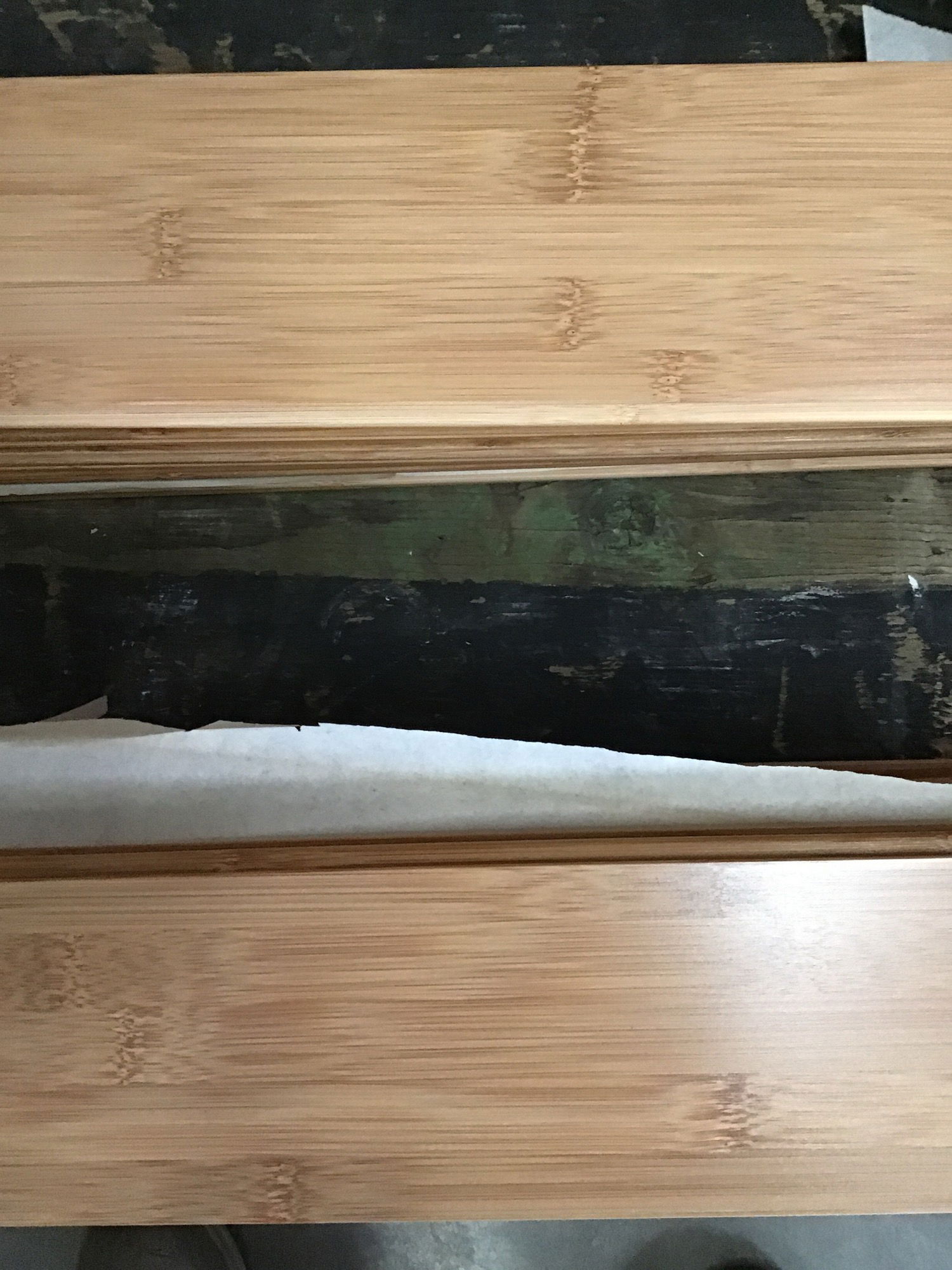 Horizontal grain, carbonated bamboo planks, just over 40 square feet.