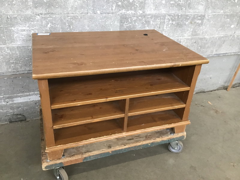 We don't even speak the name of what I think this piece of furniture used to be, but I think it's sturdy looking enough to make a fine little hallway bench set with storage.
