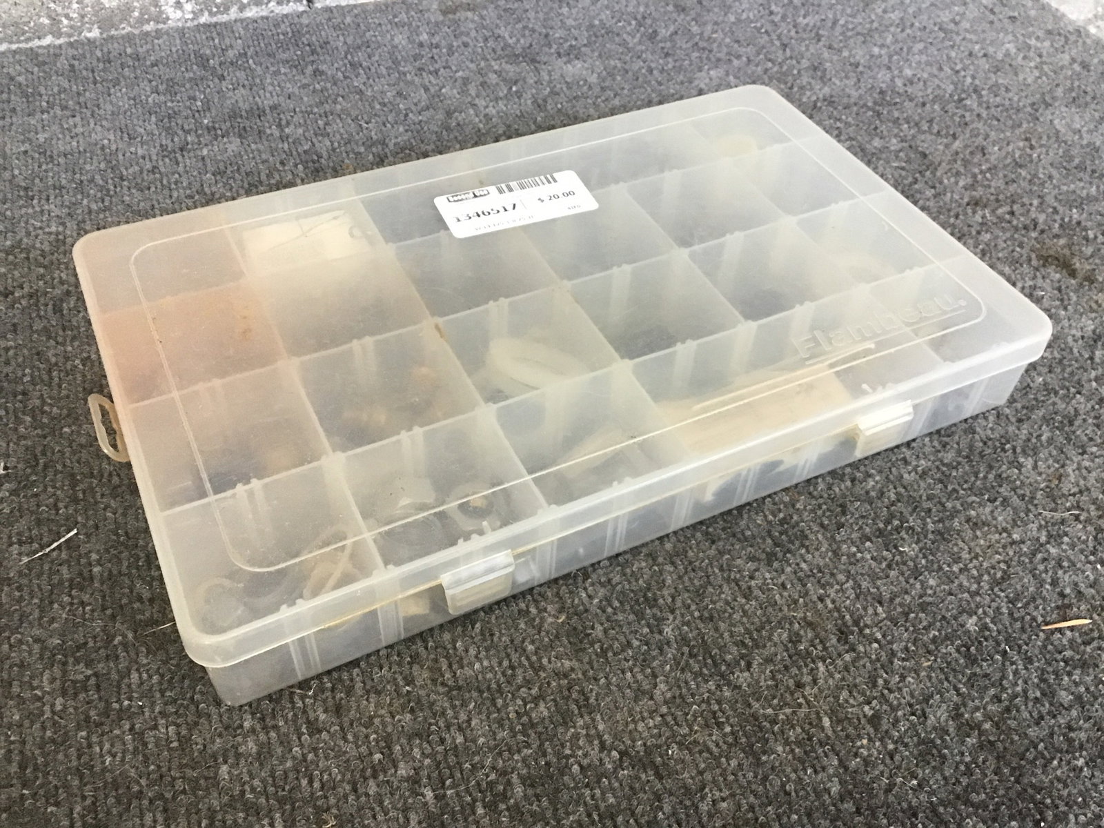 A bit organizer that's currently filled up with some miscellaneous hardware and little slats to adjust the setup. In total, there are about 48 potential little spaces for organizing your bits (though you'll probably need to make a couple of the little dividers, though).