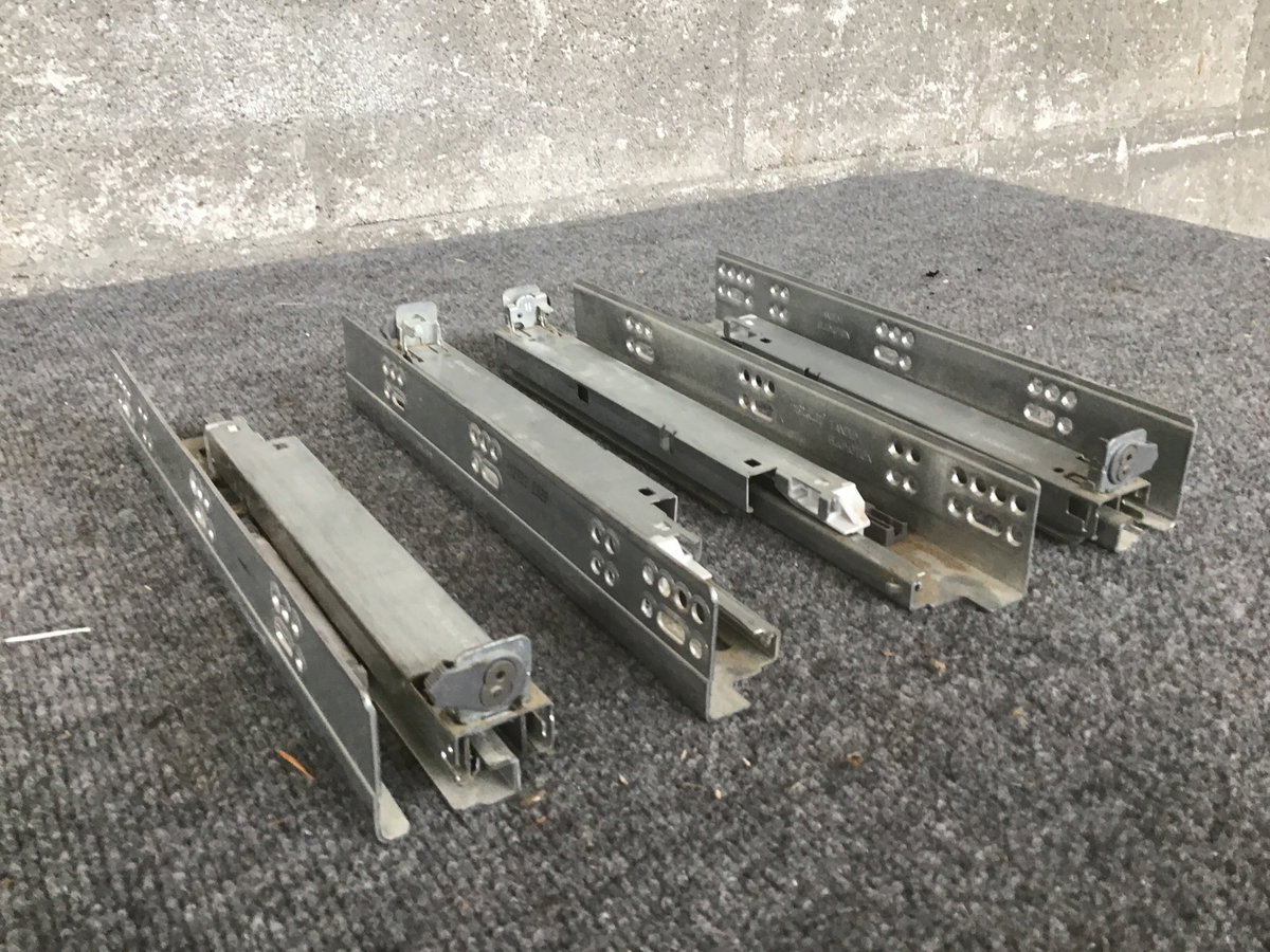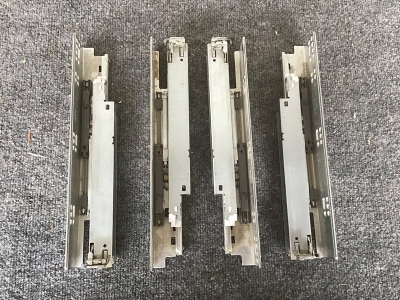 Two pairs of tandem Blumotion undermount drawer slides from Blum. They do not come with mounting brackets, but you can order replacements from Rockler. The slides retail for $37 a pair online.