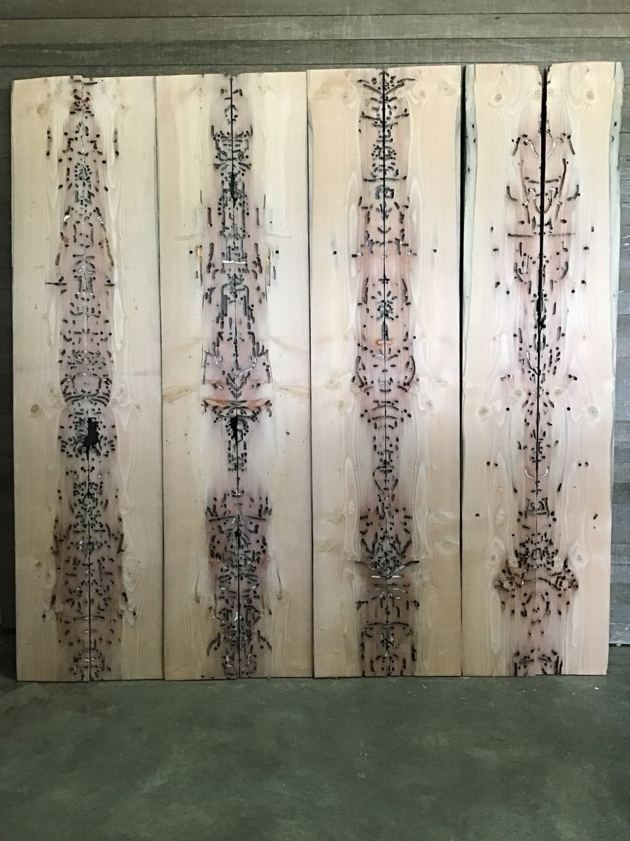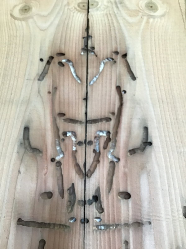 Fantastic stock for all sorts of projects with traces of life long gone in the channels left behind by the seafaring teredo clam as well as the tiny punctuations of the gribbles who settle in afterward; the handiwork of annelids, mollusks and arthropods.