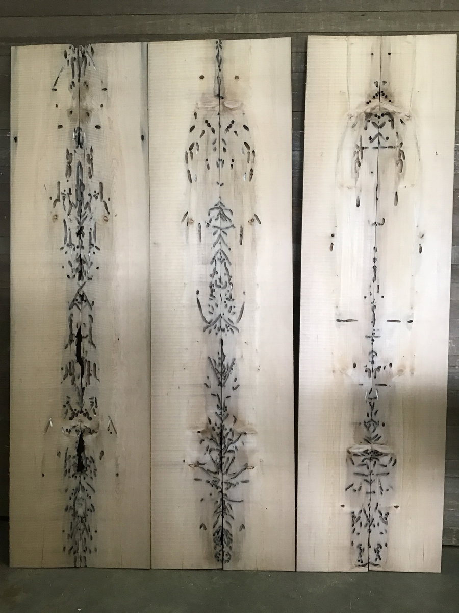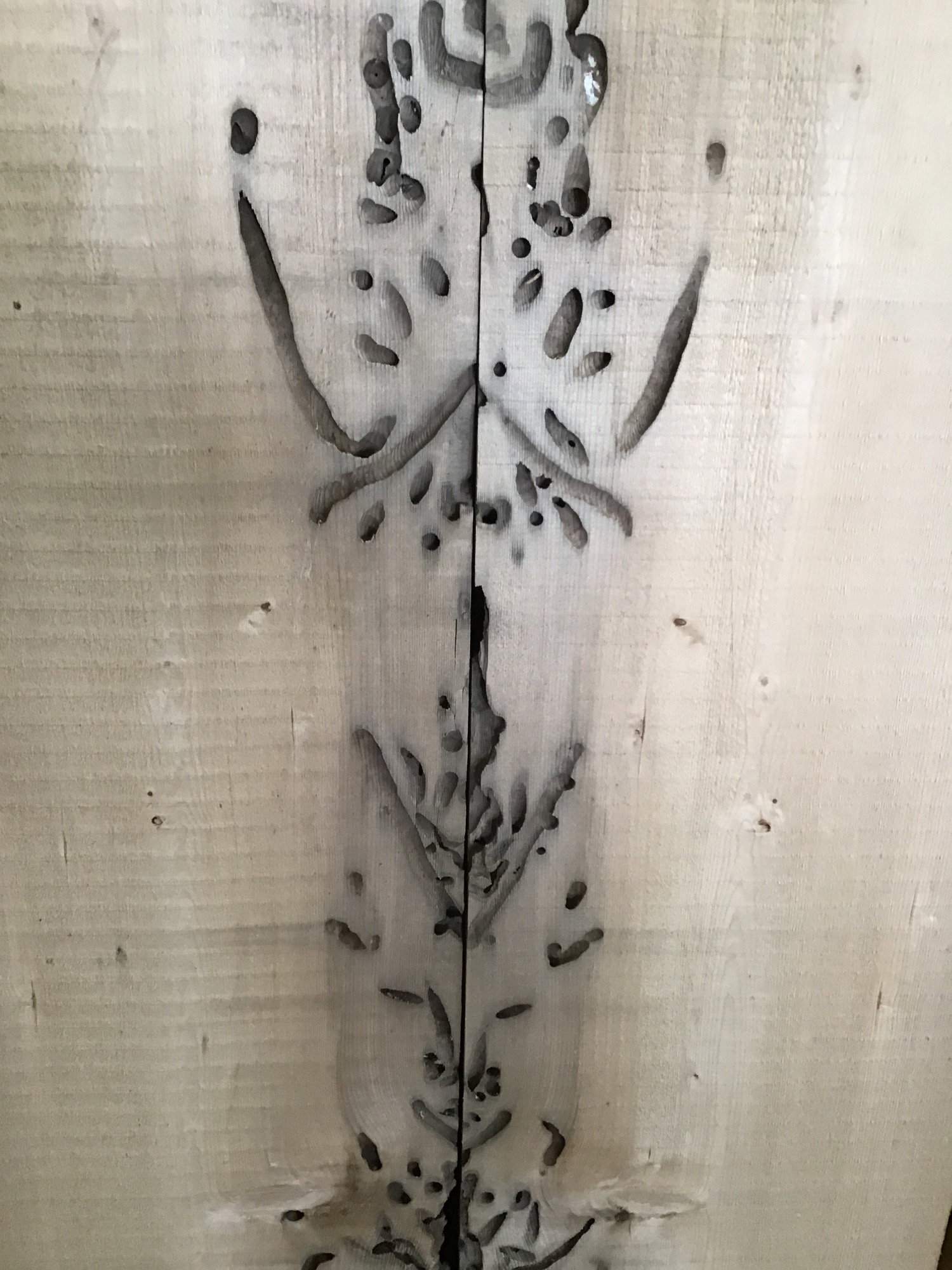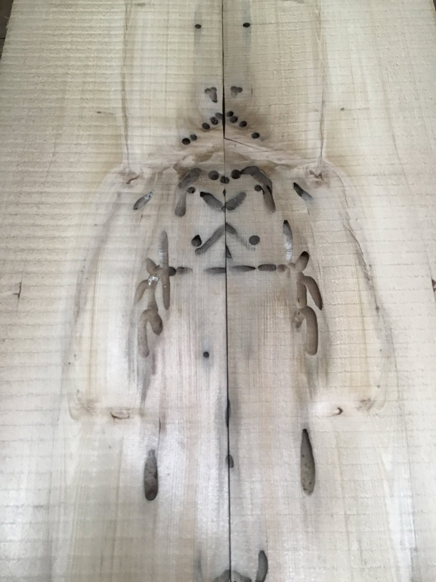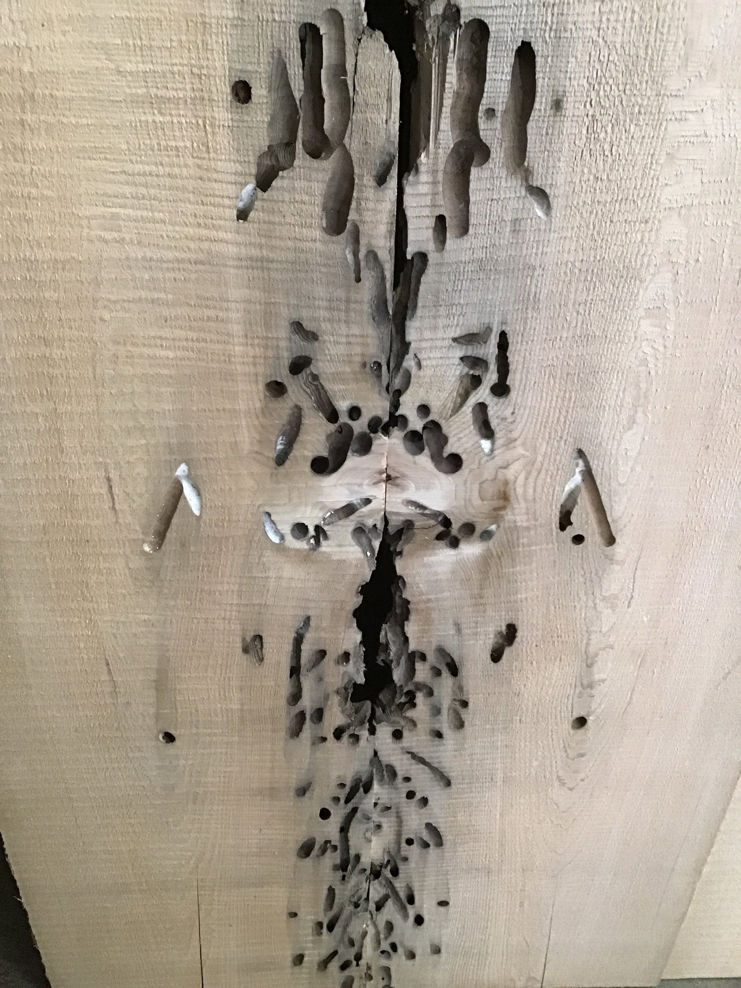 Fantastic stock for all sorts of projects with traces of life long gone in the channels left behind by the seafaring teredo clam as well as the tiny punctuations of the gribbles who settle in afterward; the handiwork of annelids, mollusks and arthropods.