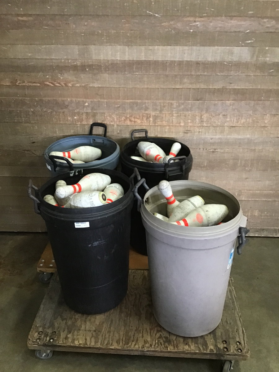 Some awesome bowling pins salvaged from Skyway Park Bowl in Renton! I hear there is endless ways to repurpose these guys. Come snag some for your next creative project. Happy crafting!
