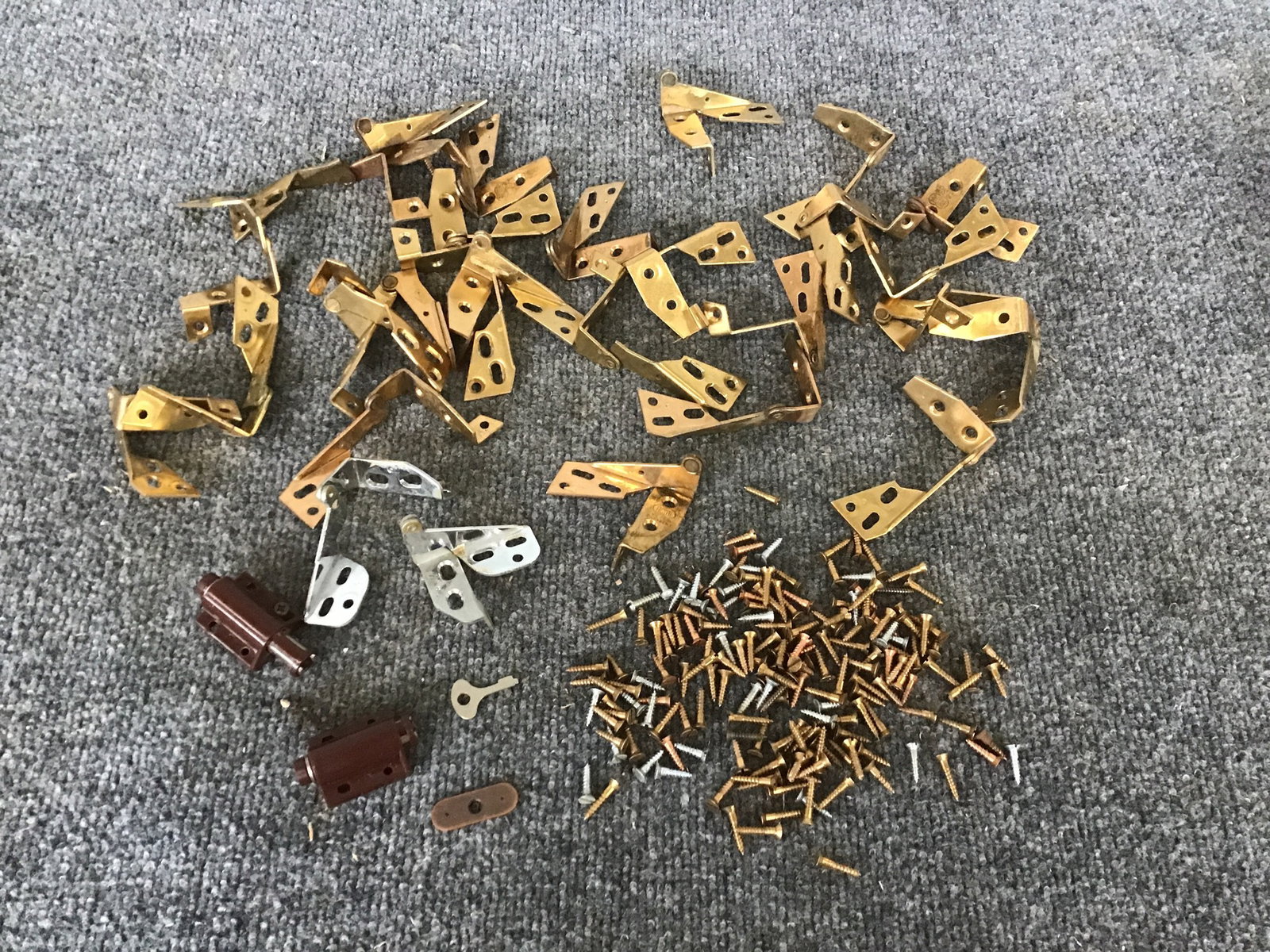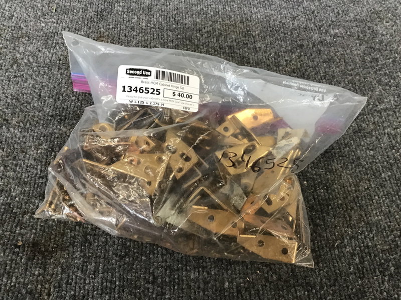 Ready to give your cabinetry a more MCM look? Use this set of Ajax vintage brass hinges along with brass wood screws to make that dream a reality. 26 brass hinges, 2 aluminum ones.