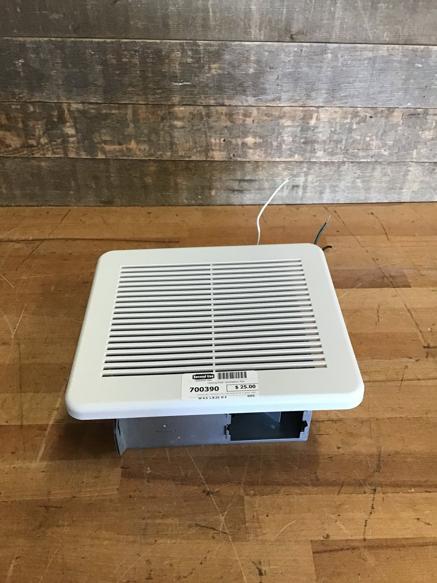 Ceiling/wall ventilation fan that looks to be in good, used condition. Not tested in house, but the wiring looks to be in good shape. We recommend a full test prior to installation. Measurements do not include 11" x 9.5" cover.