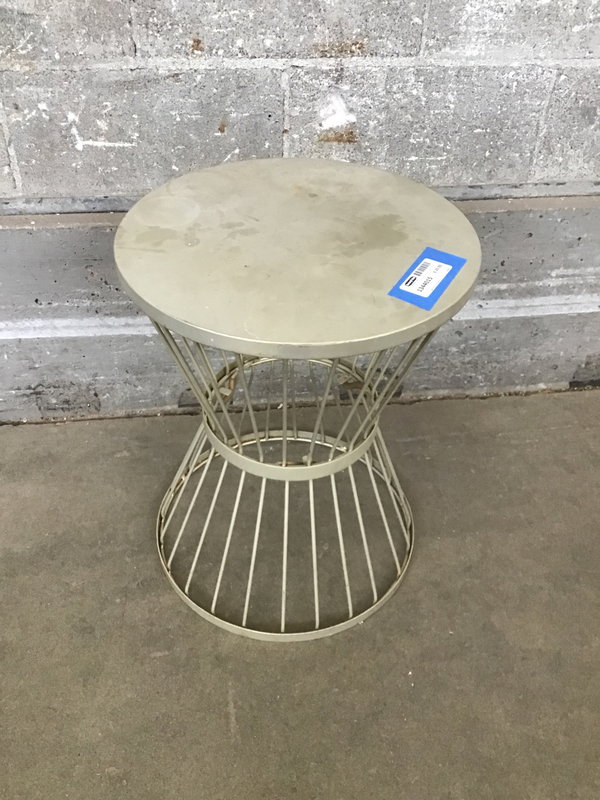 Metal side table in a matte champagne finish, perfect for indoor or outdoor use!