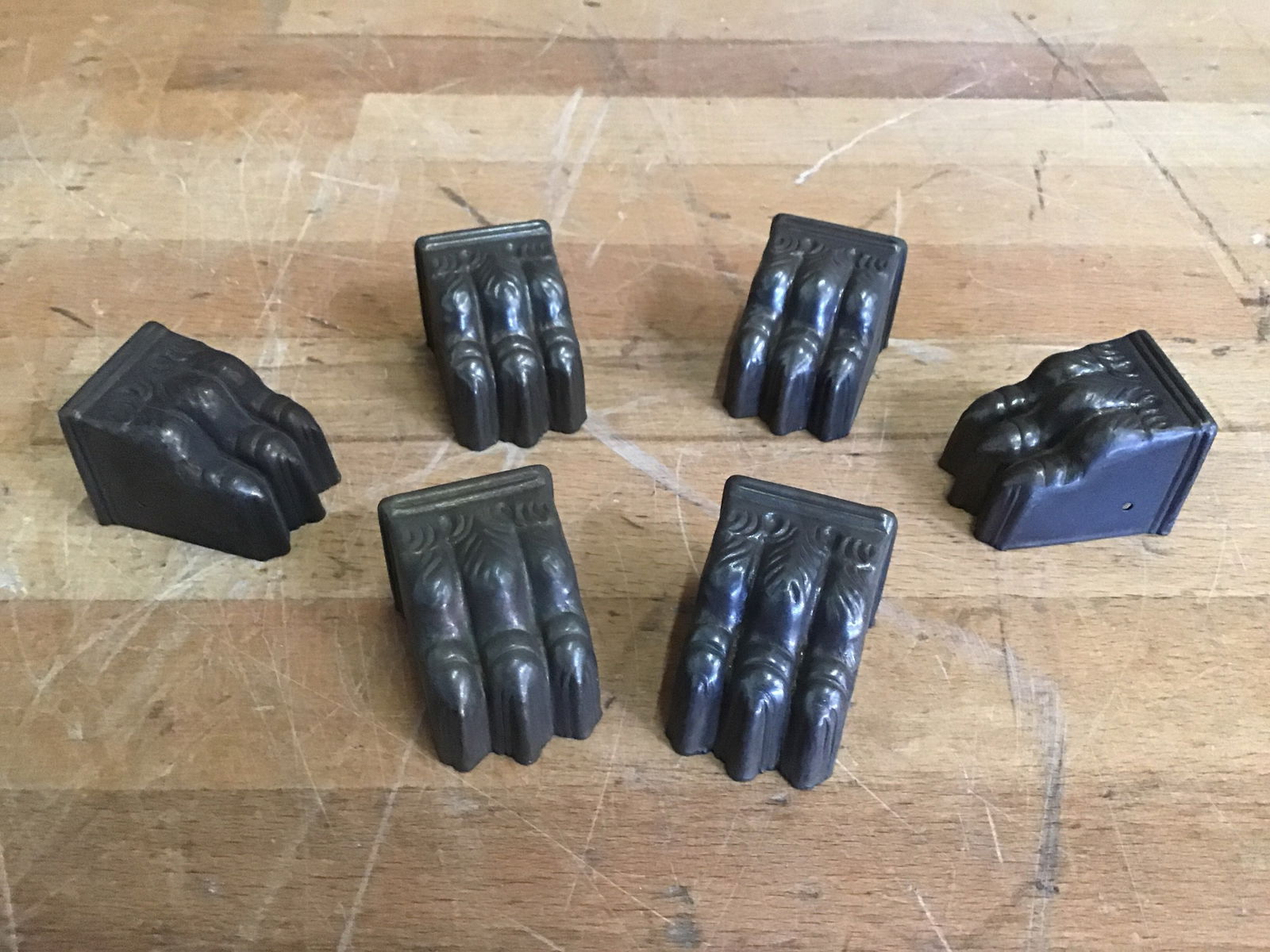 Brass-plated steel clawfoot leg cover for cabinets or furniture. Set of 6. Similar items retail for $8 each