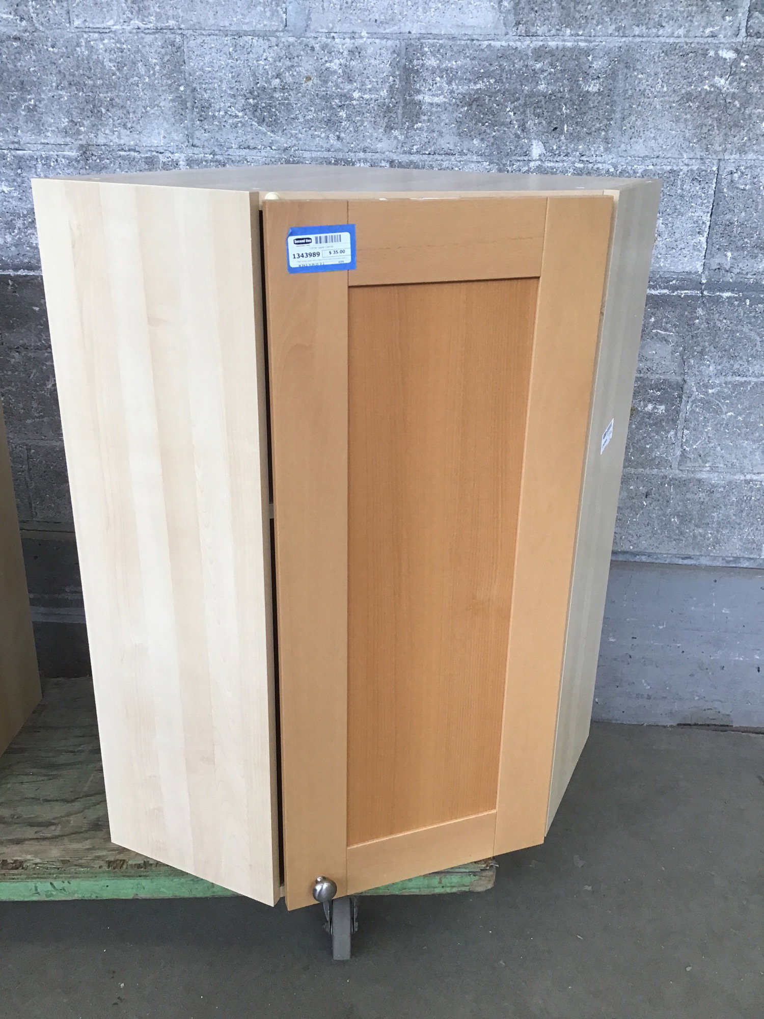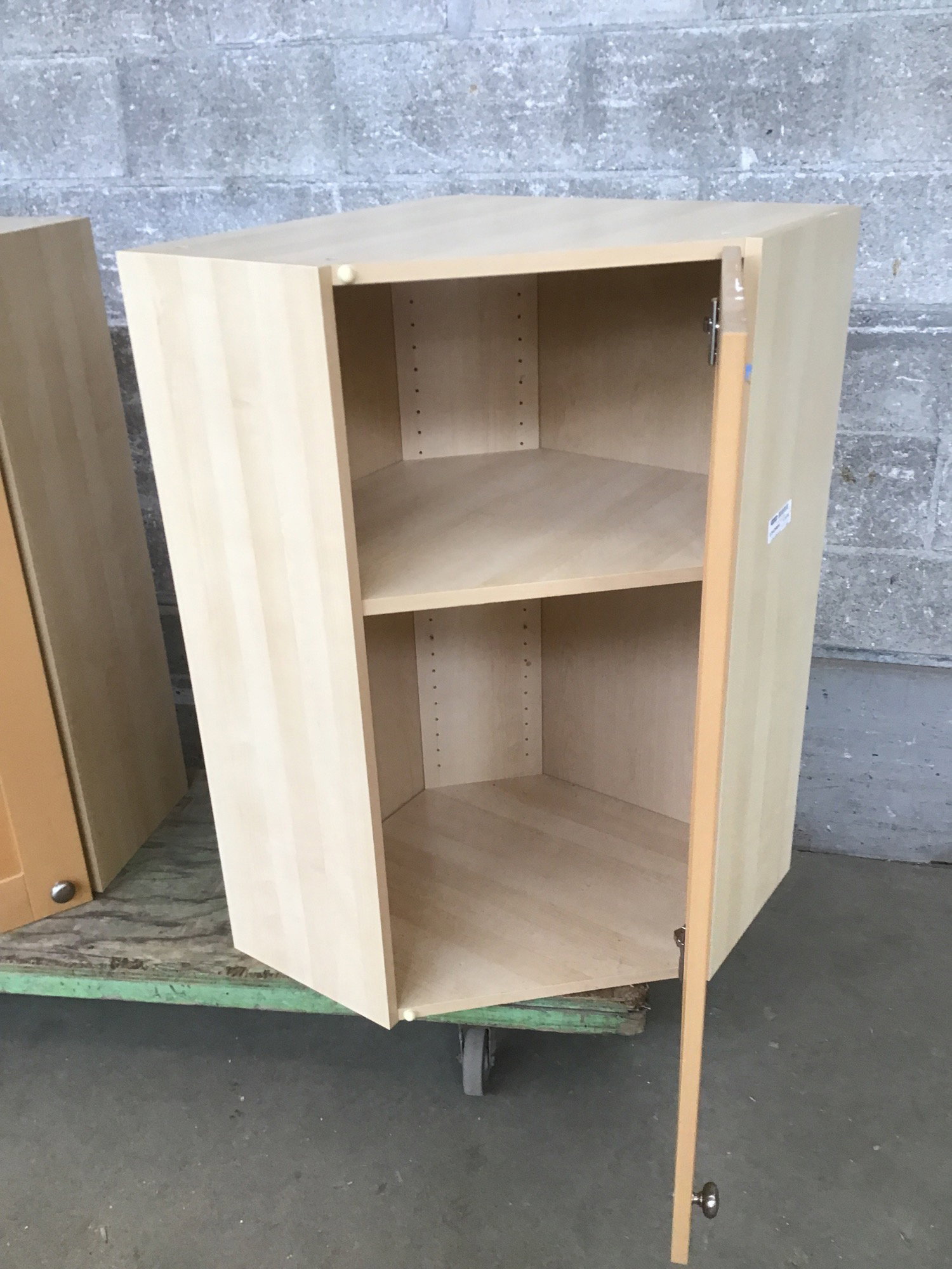 Ikea corner upper with a beech front face and shaker-style panel. Has adjustable height shelves inside.