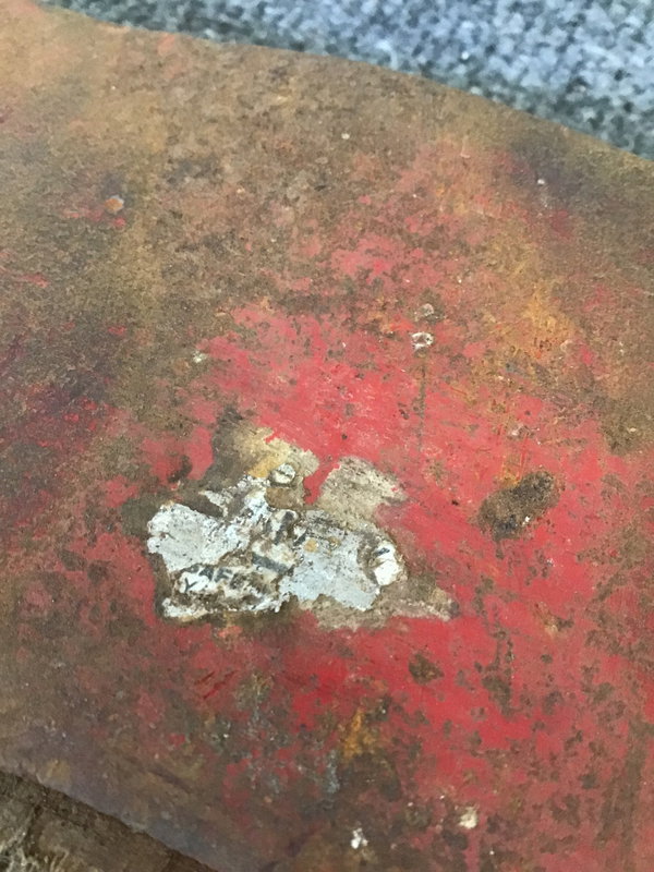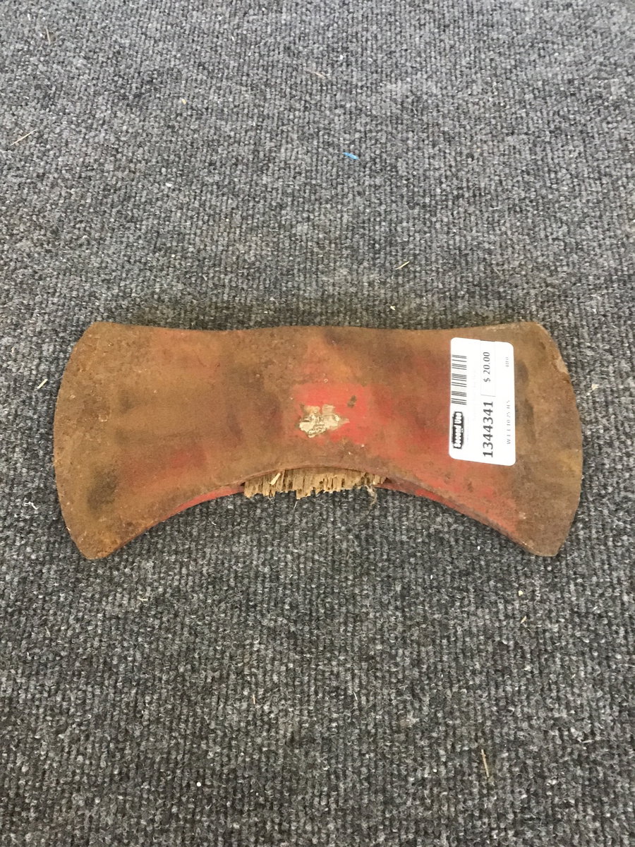 Decent looking double bit axe head that I think (based on the red paint and remnants of silver sticker) was made by Council Tool, but you be the judge. There is a 5 stamped in it.