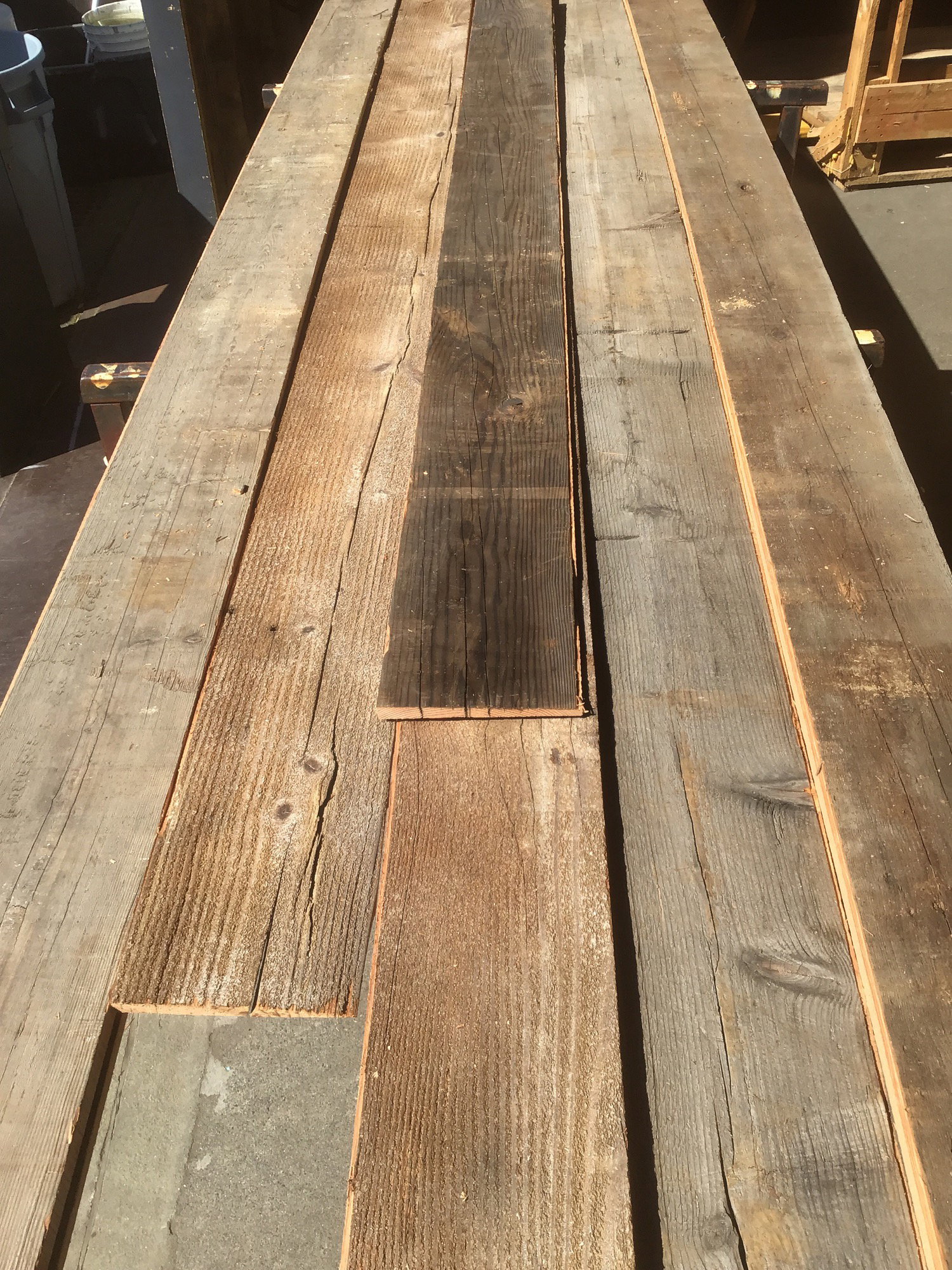 Milled by Nelson Treehouse out in Fall City, the folks from the reality TV show Treehouse Masters. These are remnants from their wide plank flooring they custom mill for their tree houses. Resawn from kilned Fir/Hem/Pine barnwood beams. Mostly milled to 6.75" wide but the thickness varies from .75" to 1/8" making for a really unique looking textured wall. Each board has it's own character including circle saw marks, nail holes, knots, spalting and iron stains. In lengths from 12ft to 3ft. Photo may be representational. This is a bulk item. No holds please.