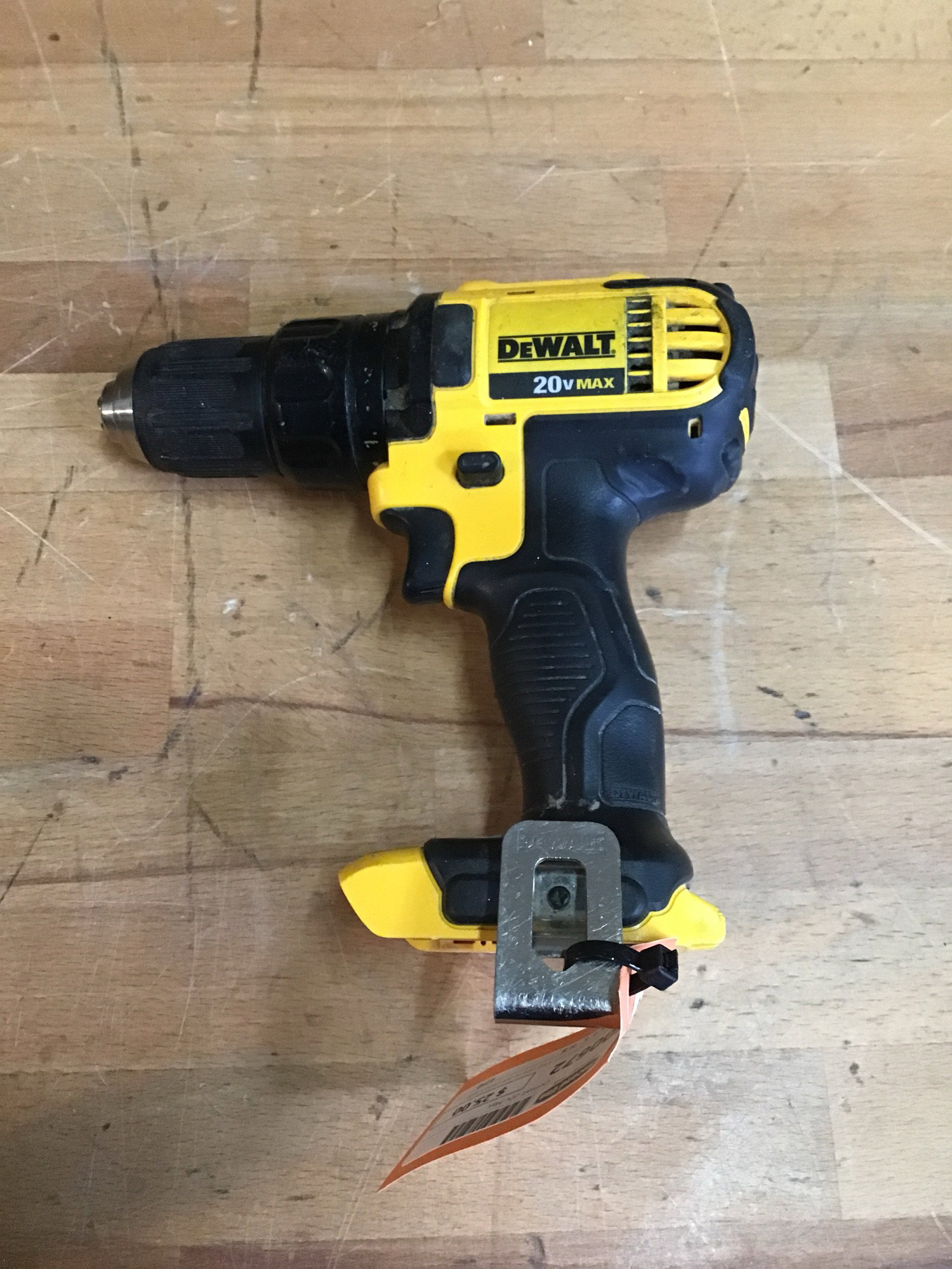 Dewalt 1/2" cordless drill driver runs on 20V DeWalt batteries. Not tested with a battery but there is a 30 day return policy!
