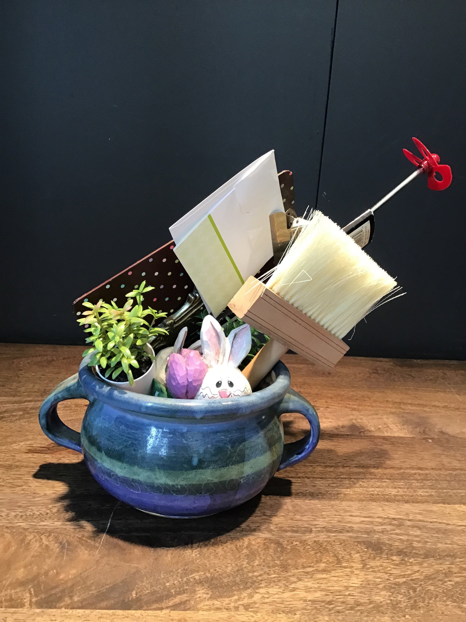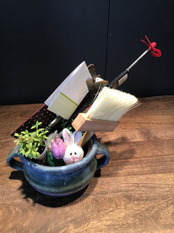 Moms work hard and real flowers wilt and die, so what do Moms have left to enjoy for all the hard work they do? Why not give Mom a bouquet that lasts forever! This handmade DIY bouquet is made with love of all sorts of recycled material the ceramic vase is filled with "flowers" that are made of all sorts of salvaged goodies! So give your eco-conscious Mom a gift that will last a lifetime and will look beautiful on your patio table or garden! Includes a blank card!