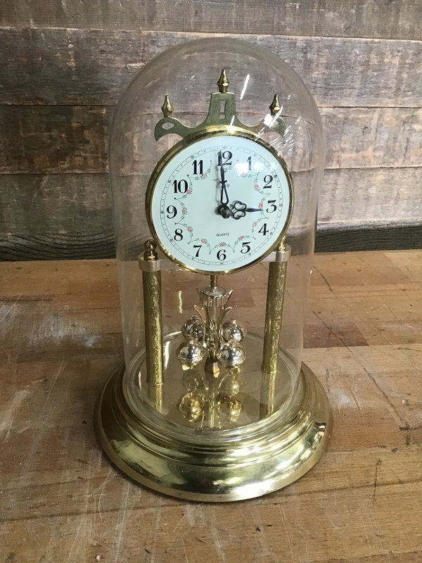 Vintage gold-tone quartz desk clock with a little torsion movement at the bottom.