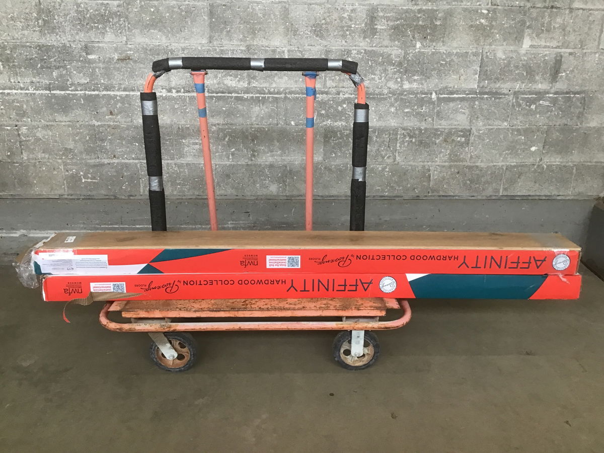 Lot of two boxes of oak veneer flooring, 34 SF / box.