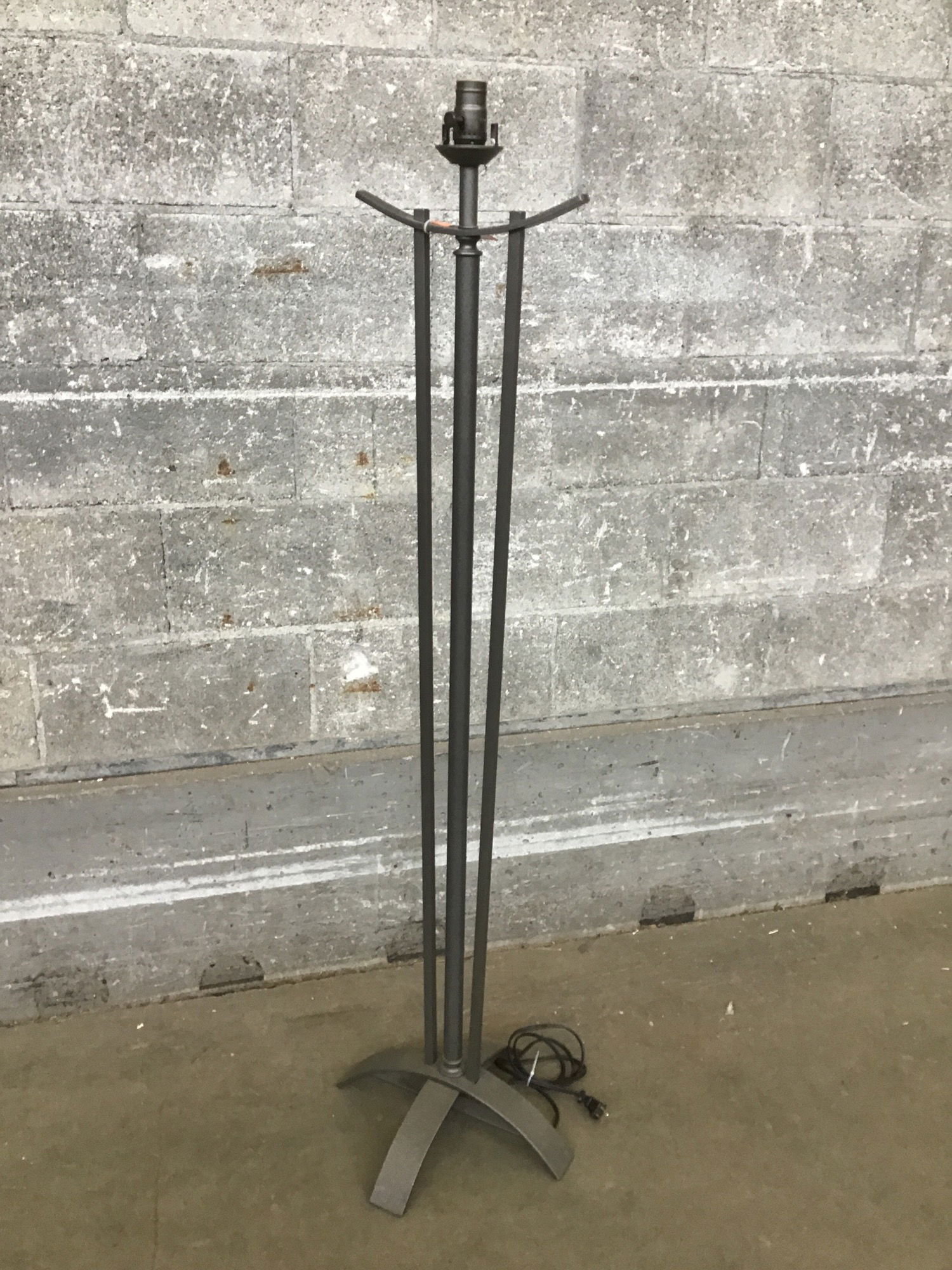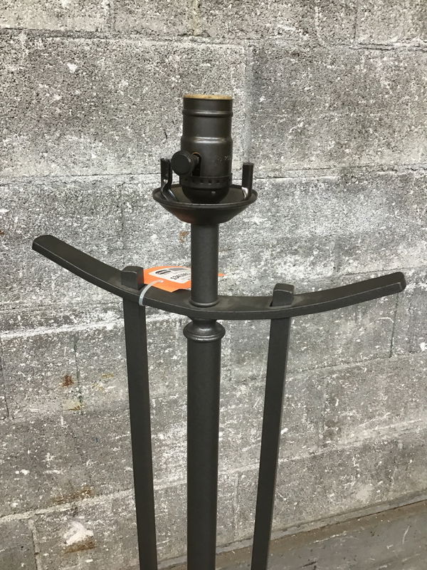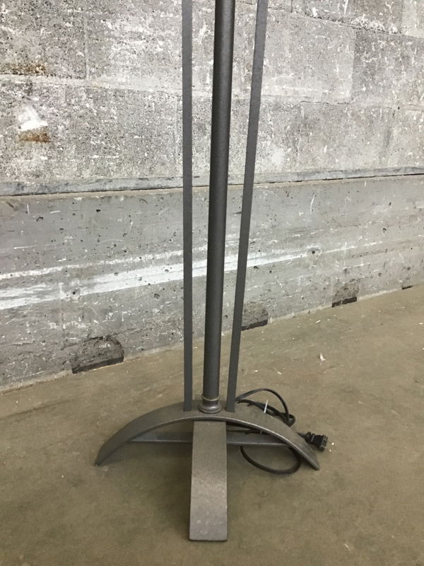 Made by Hubbardton Forge, this floor lamp features a subtly textured grey steel body with crisp lines stemming from a curved base. It's got a very "tasteful villain's lair" vibe. All it needs is a harp and a shade to really shine. This was tested in house and appeared to be working just fine.