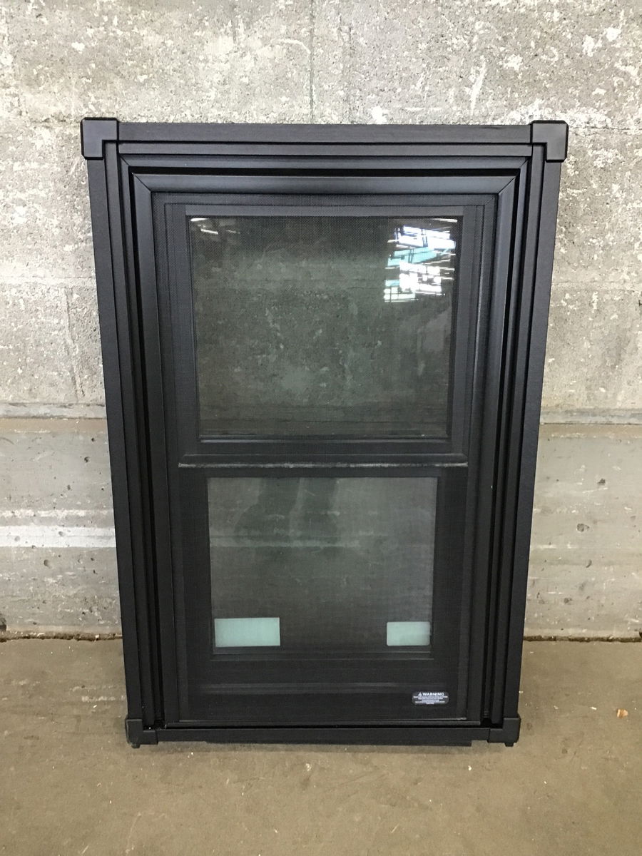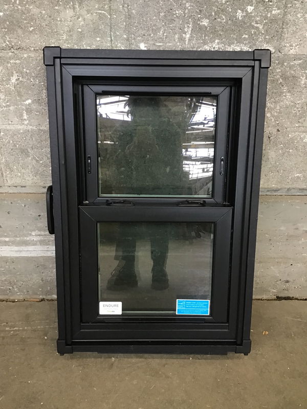 New sample single hung window currently encased in a frame with a handle making it easy to move, it appears the case can be removed.
