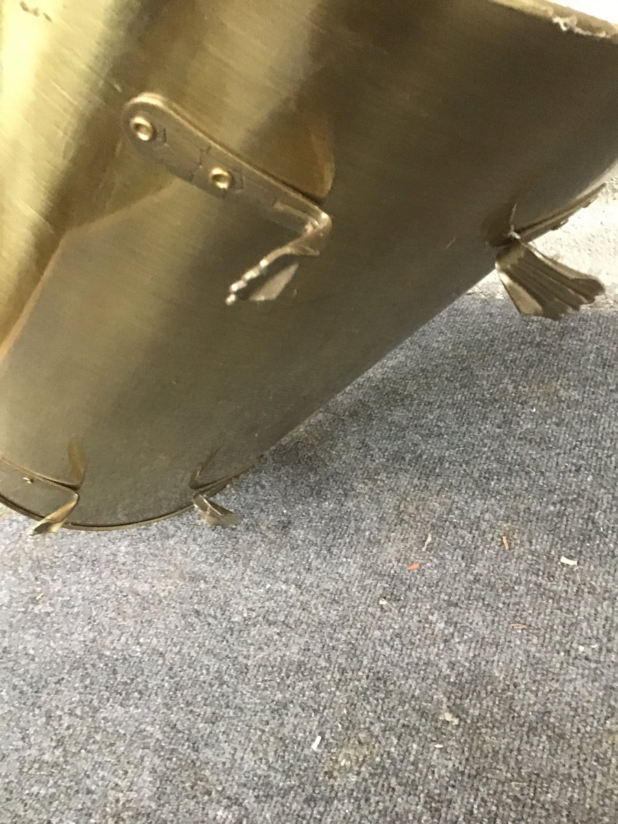 Antique brass finished steel cradle to hold your firewood.