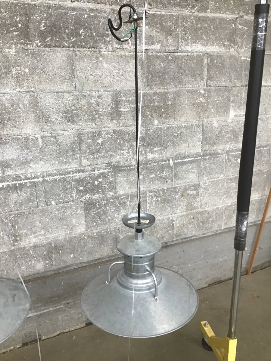 A solid metal galvanized haning light in a farmhouse style. This light features a single bulb option and is suitable for dry locations only.