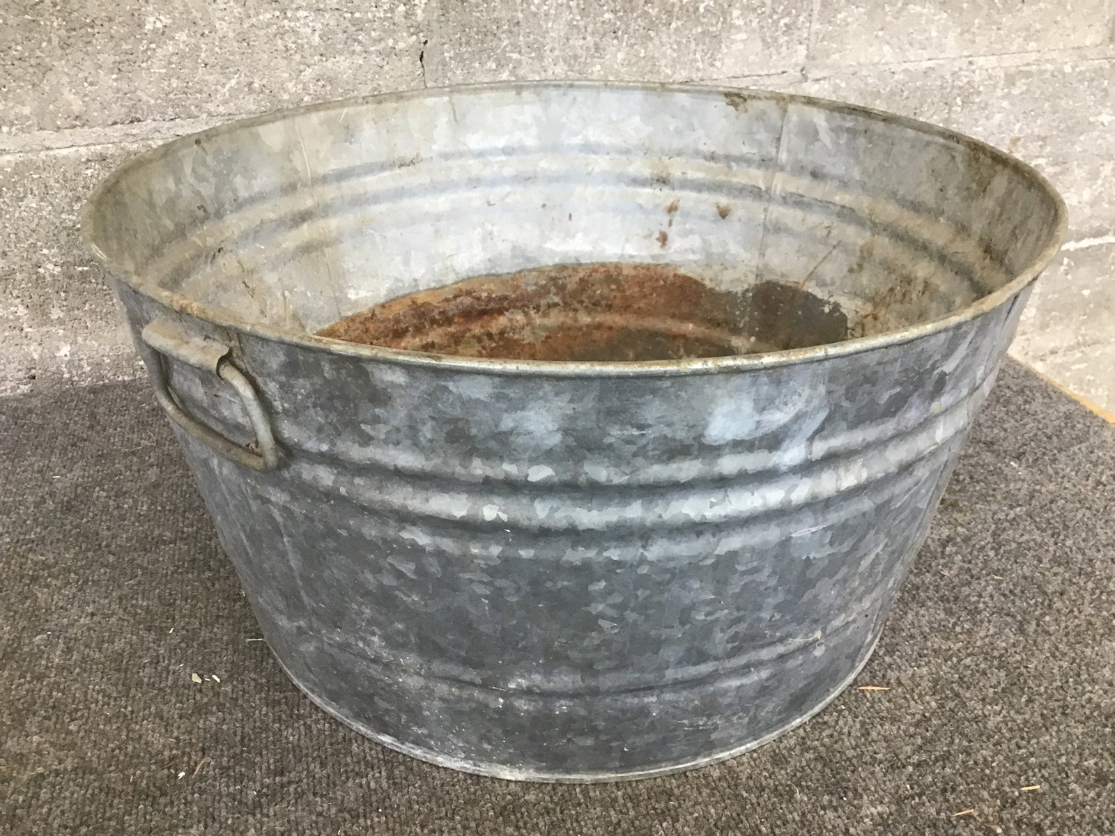 Yer classic galvanized steel tub, ready for olde timey backwoods bathin' or container gardening!