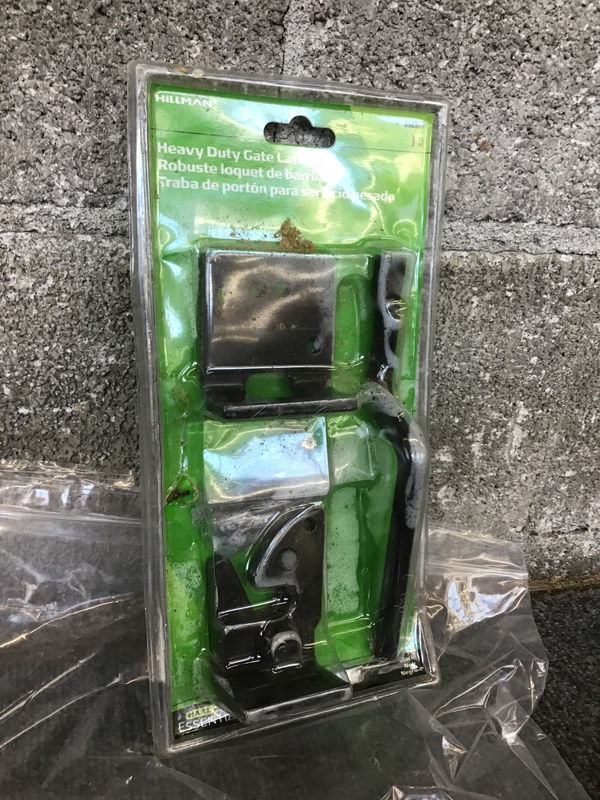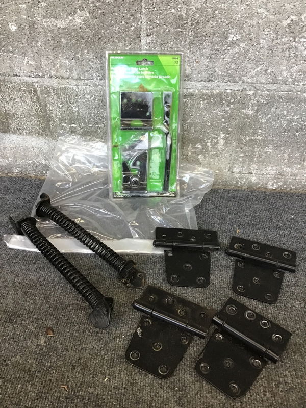 Just about all you need for a gate right here! Included are four hinges, two springs and a complete latch set that's still in its package. Just needs a gate!