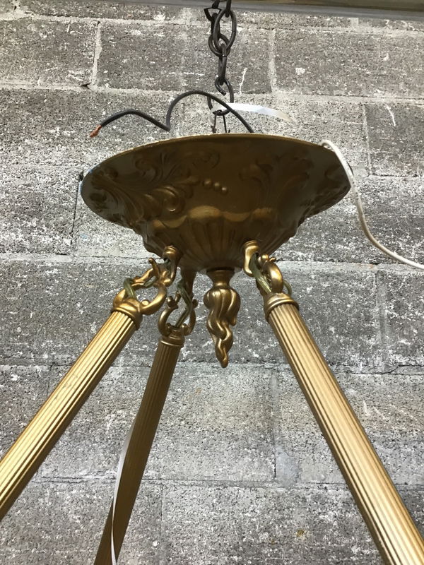 Golden Slag Glass Bowl Chandelier
