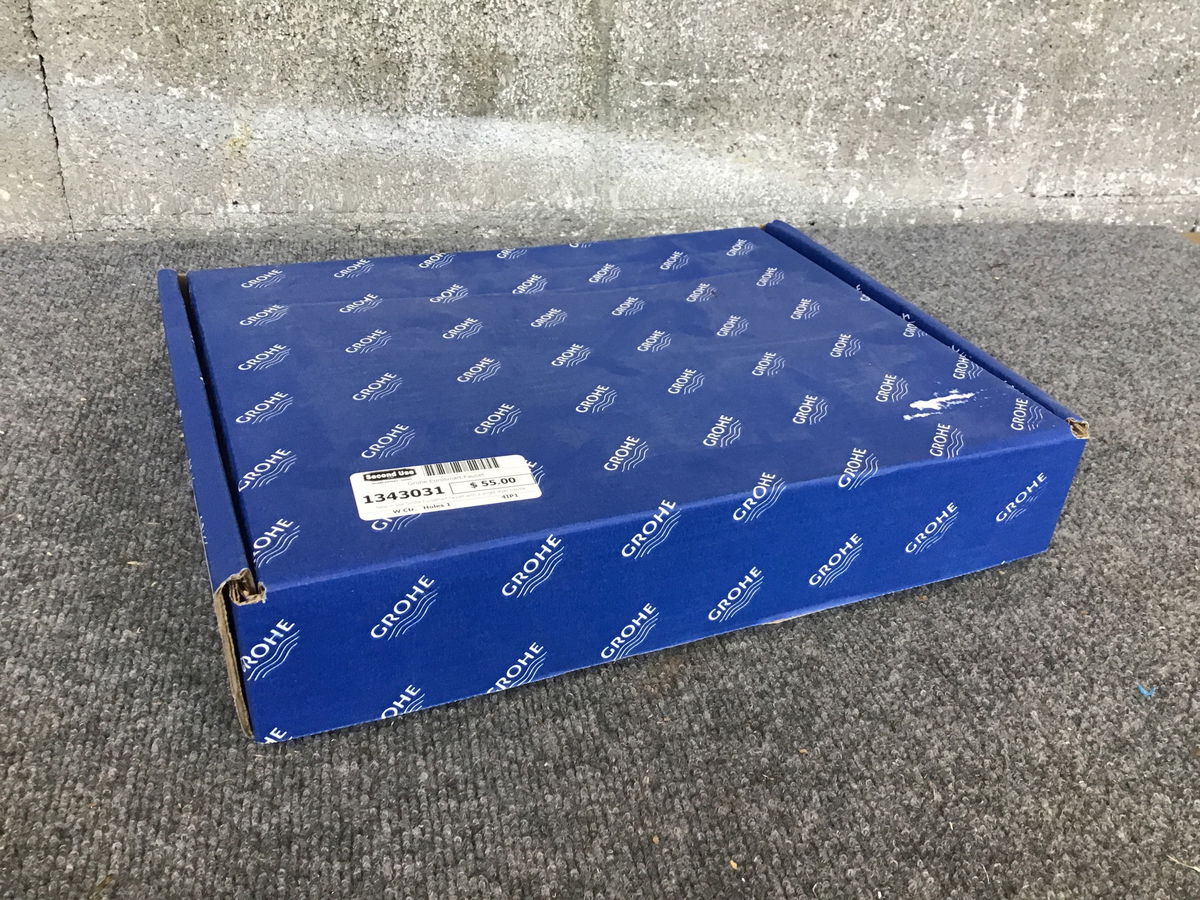 New in box Grohe Eurosmart faucet with a single lever handle and drain assembly. Polished chrome finish, includes supply lines and install instructions.
