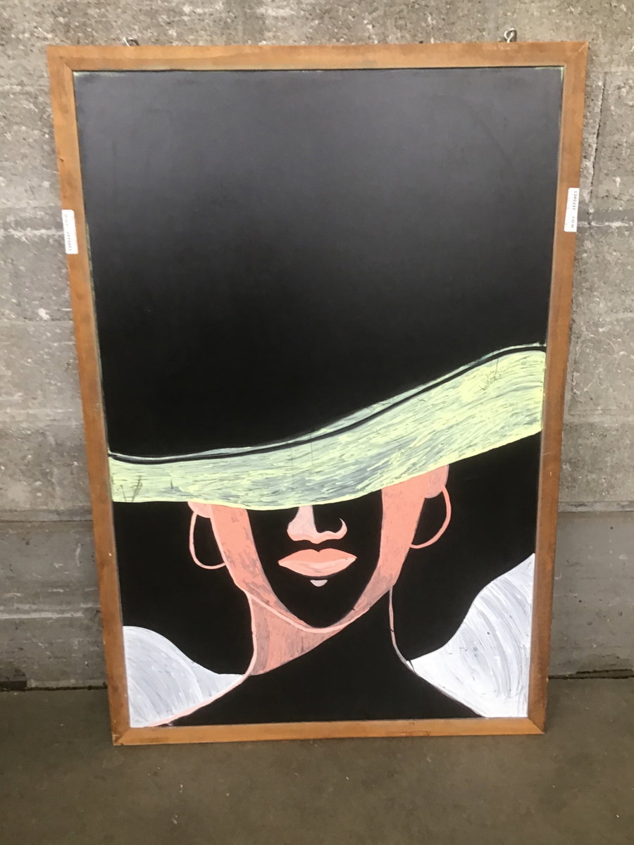 Hanging chalkboard likely previously used in a cafe of some sort. Looks like it can take regular chalk or liquid chalk.