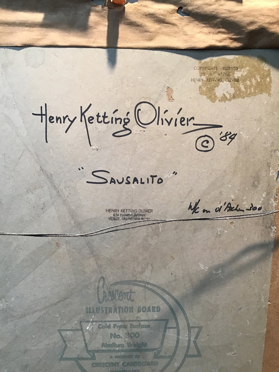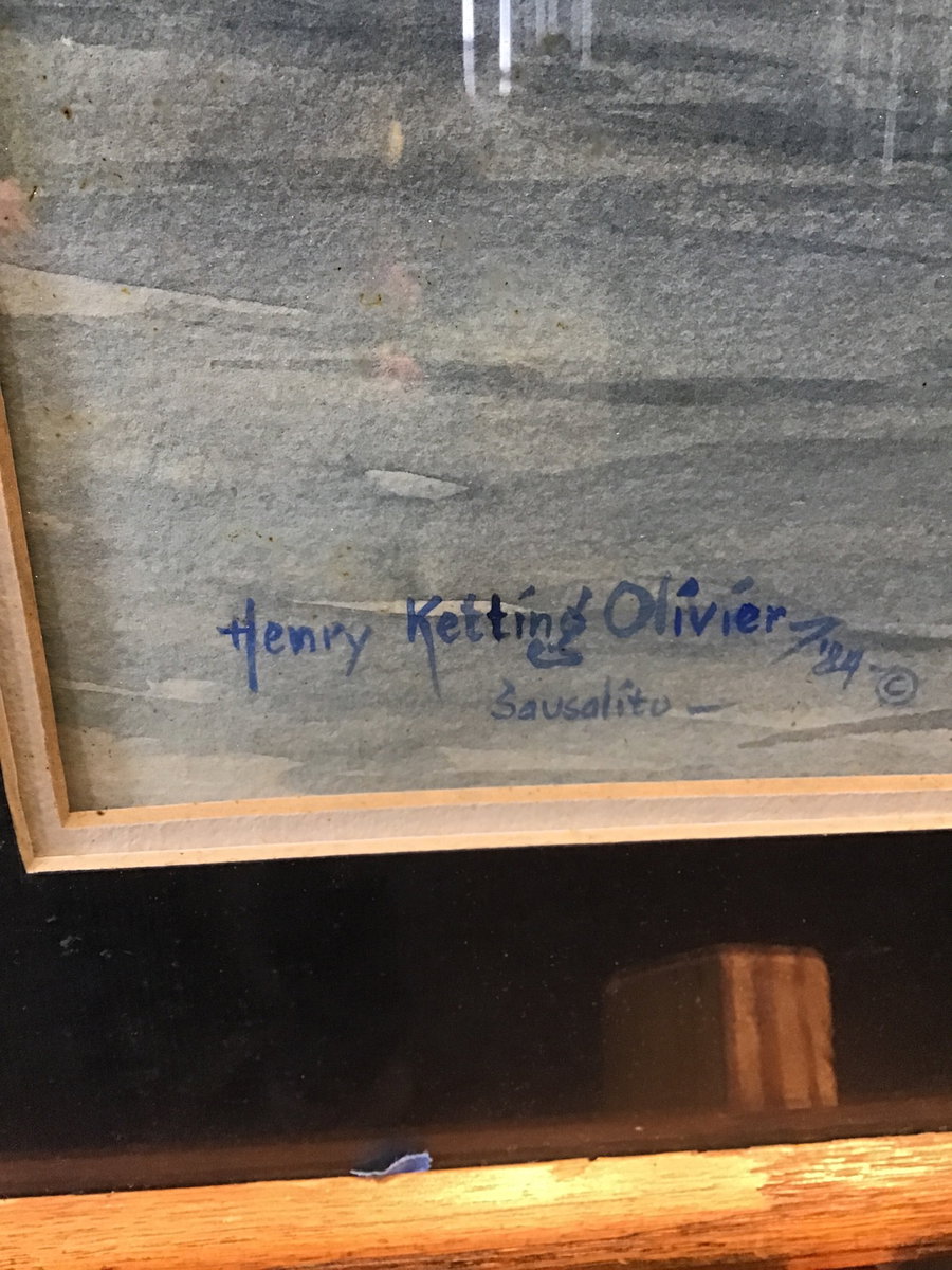Henry Ketting Olivier was an artist known for his landscapes with ties around the world, he was born in Indonesia, studied in the Netherlands and the United States. He was a renowned art teacher for years after emigrating to California after WWII. This piece is an original watercolor titled "Sausalito" which depicts the docks and harbor in the beautiful city of Sausalito, CA. Professionally framed behind glass and signed in the bottom left corner.